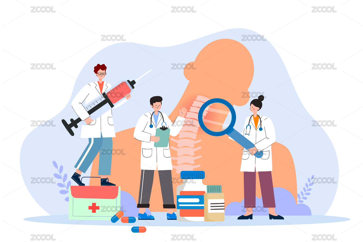 男人坐在辦公椅上,常見(jiàn)疾病頸椎病腰椎病圖