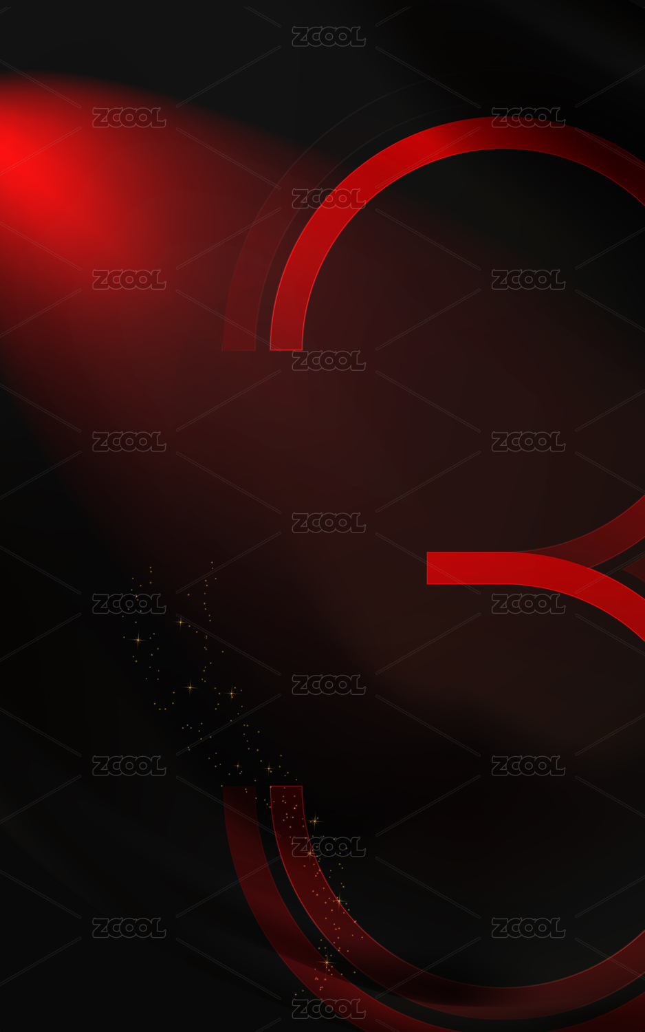 黑色背景紅色質(zhì)感重影條紋數(shù)字8創(chuàng)意海報(bào)