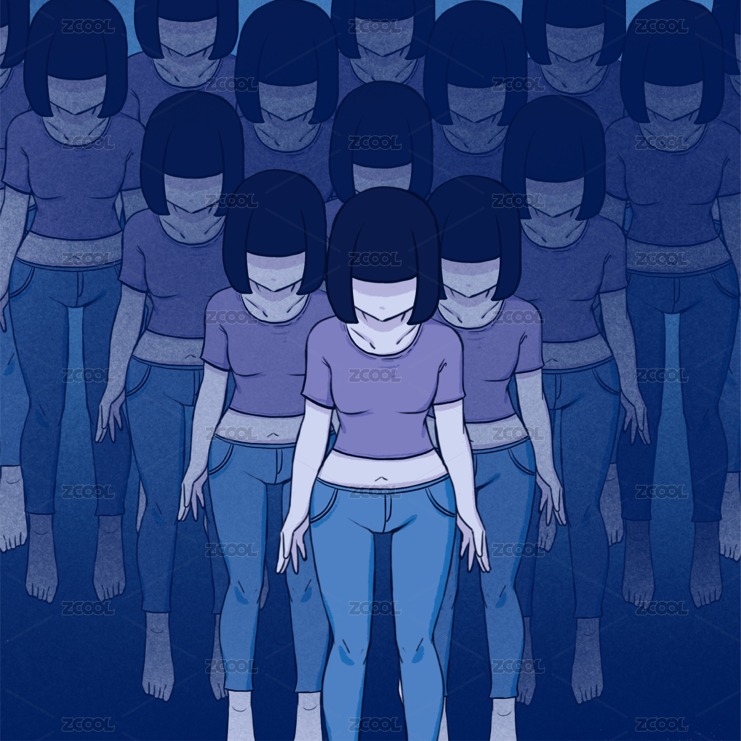 抑郁癥手繪解離狀態(tài)多人重影