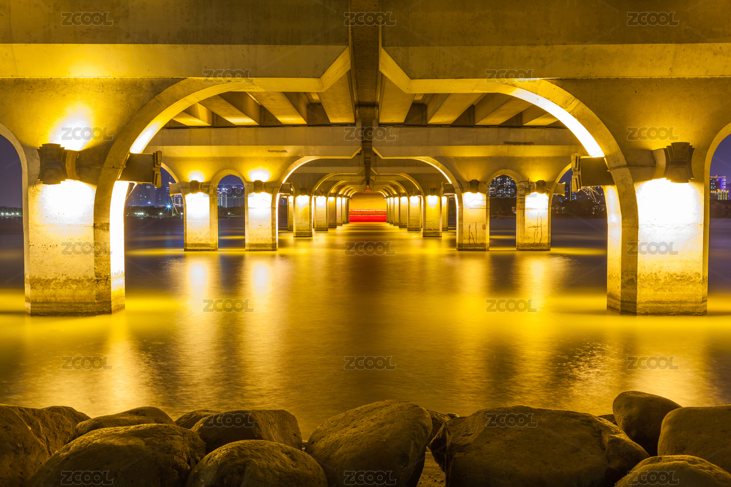 橋底美麗的燈光倒影