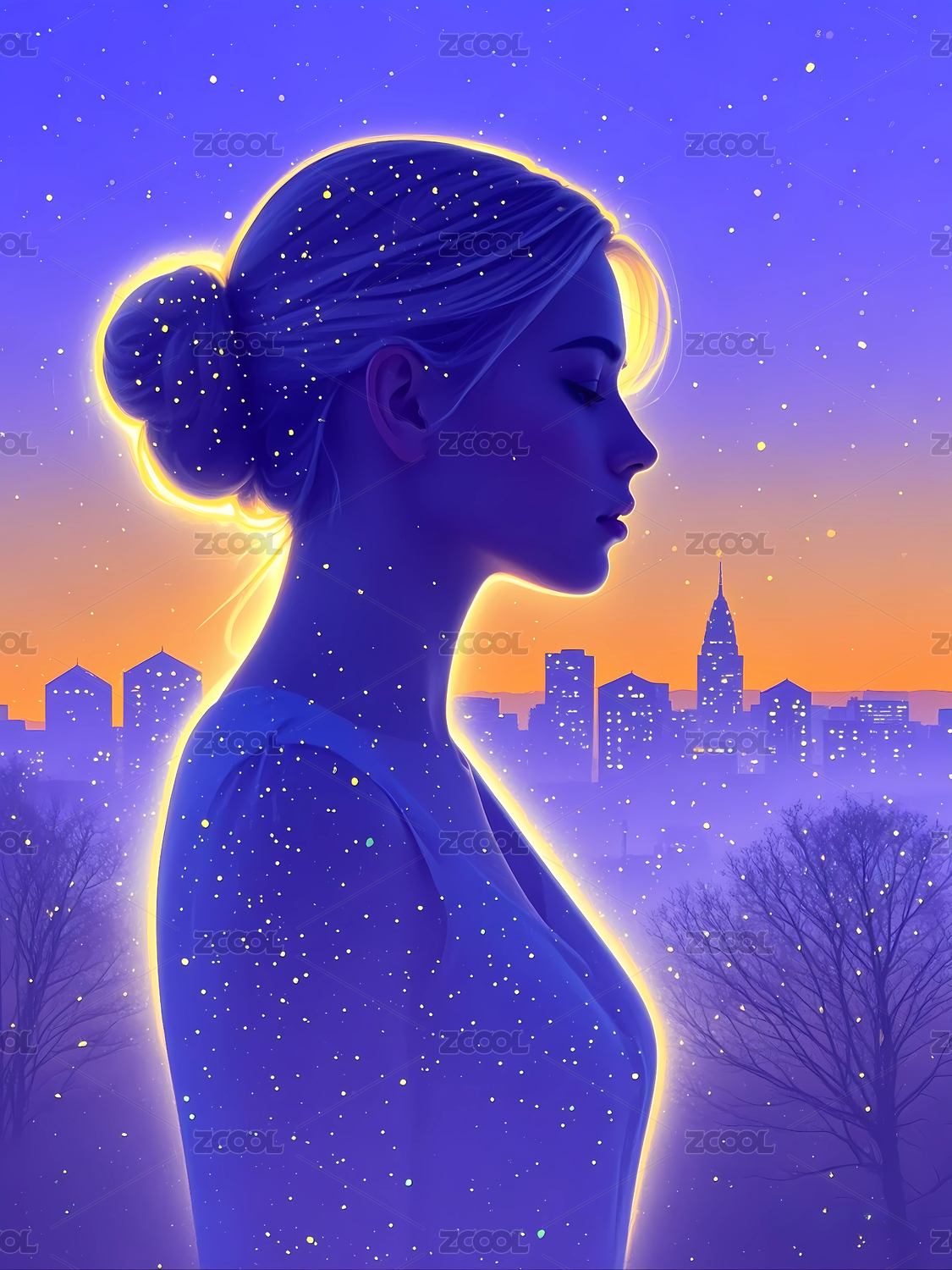 插畫藝術(shù)的美女和城市的重影