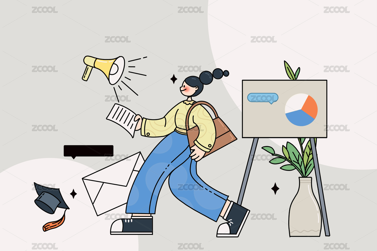春季招聘面試插畫團隊招人喇叭宣傳活動海報