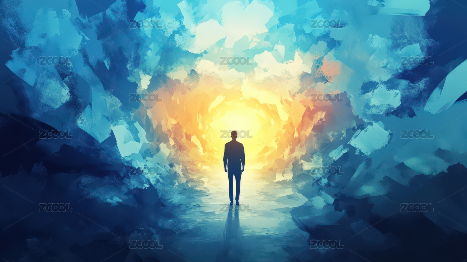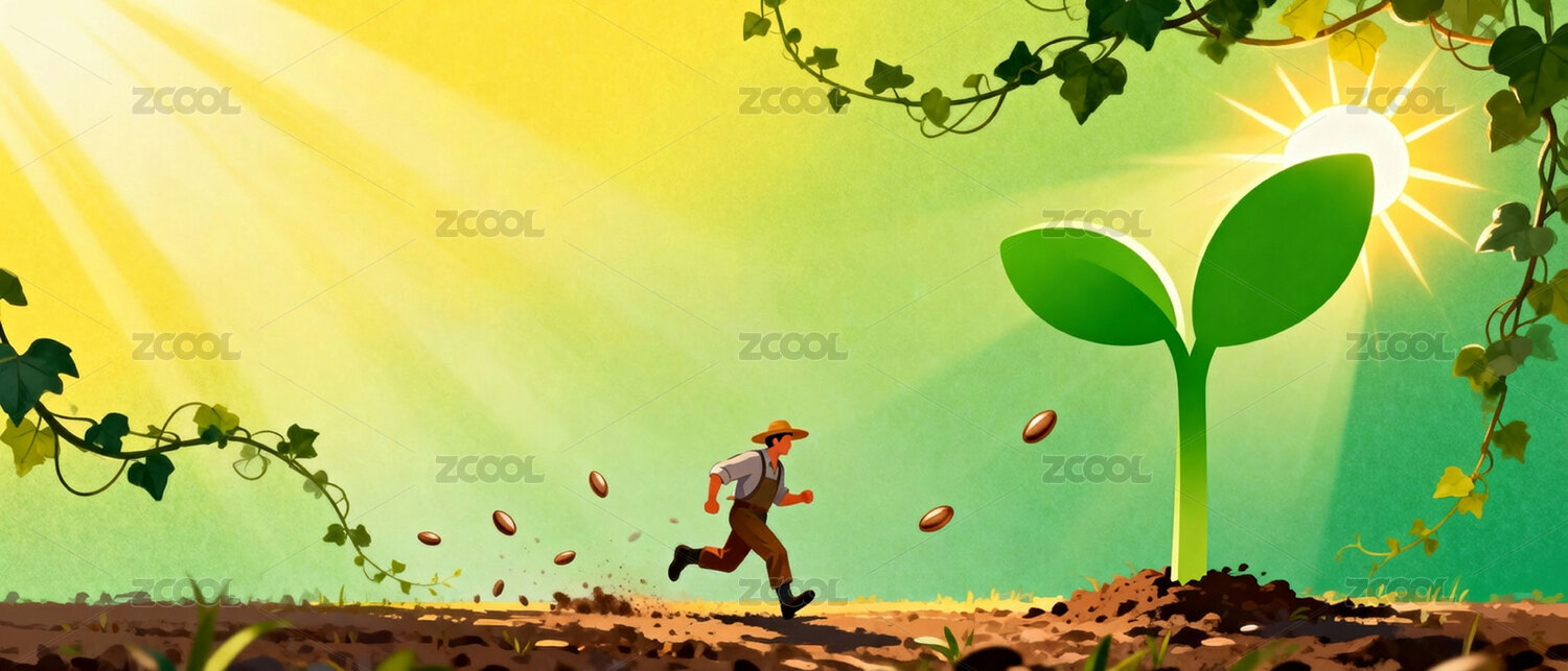 農(nóng)夫奔跑撒種幼苗迎光生長(zhǎng)