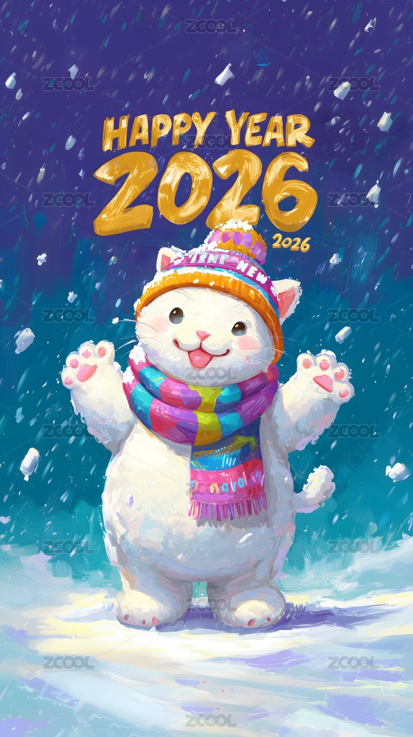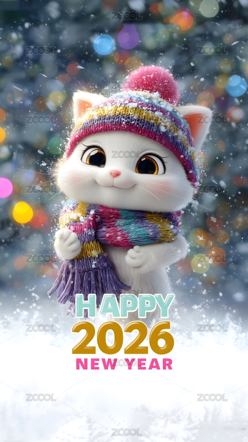 萌貓暖裝踏雪迎光織就2026治愈新年