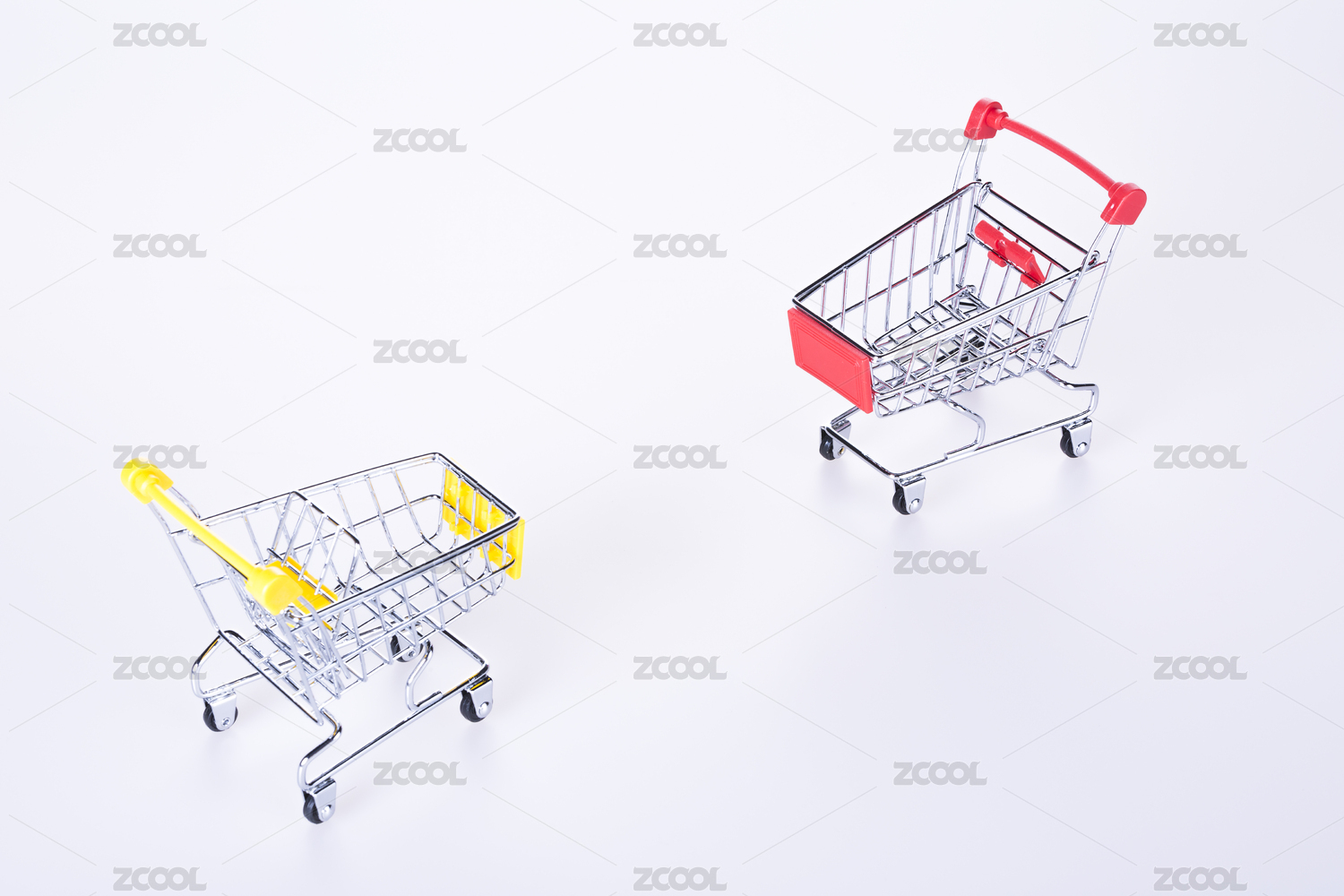 白色背景上兩臺對立的購物車