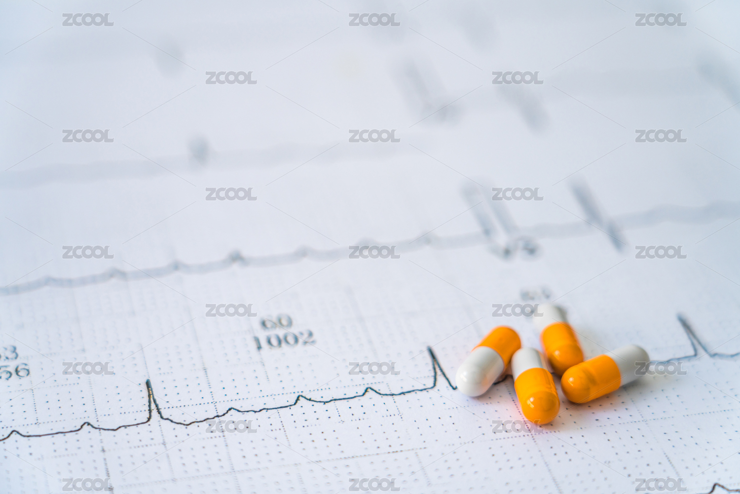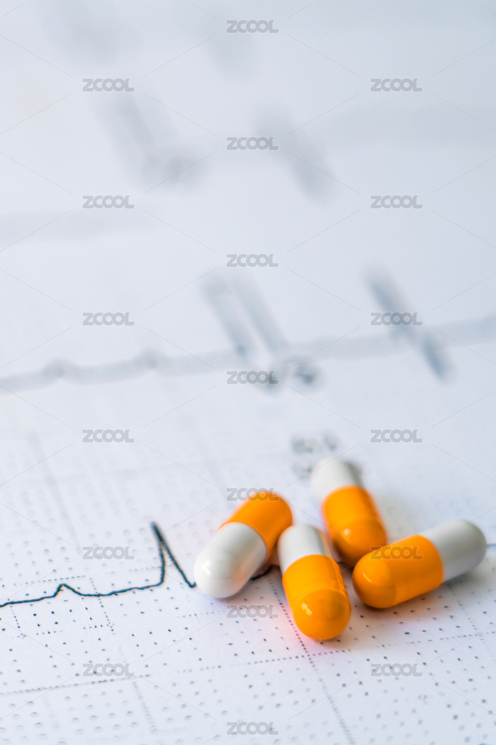 幾粒膠囊藥物放在心電圖圖紙上