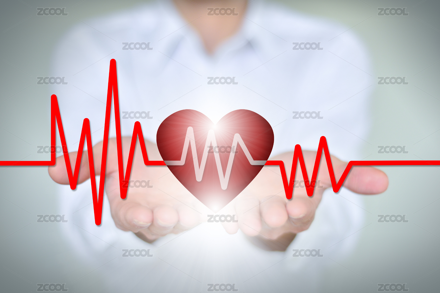醫(yī)療保險(xiǎn)、健康、醫(yī)學(xué)和慈善概念,特寫(xiě)手捧3d紅心和心電圖