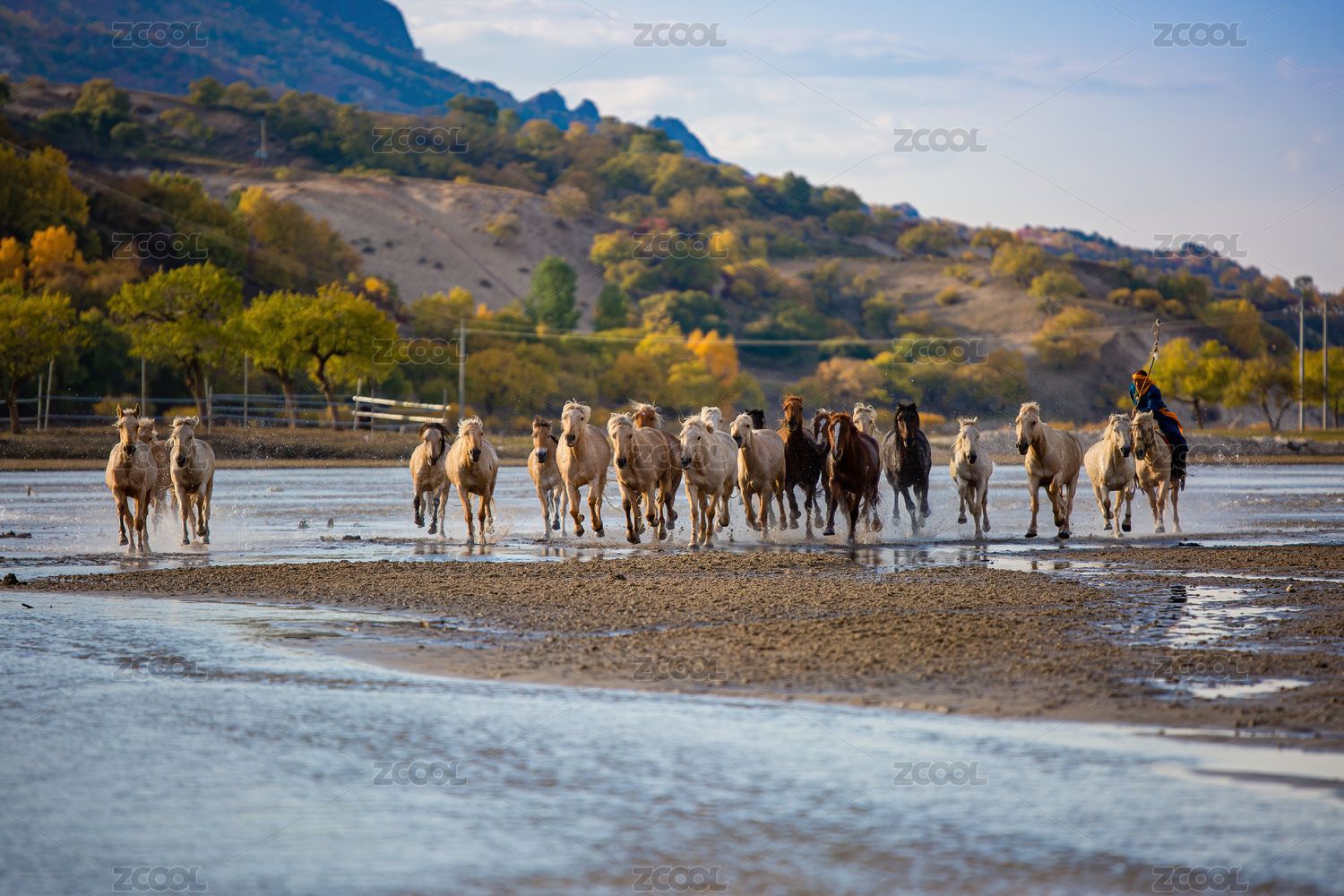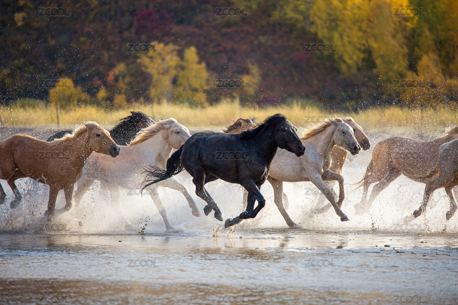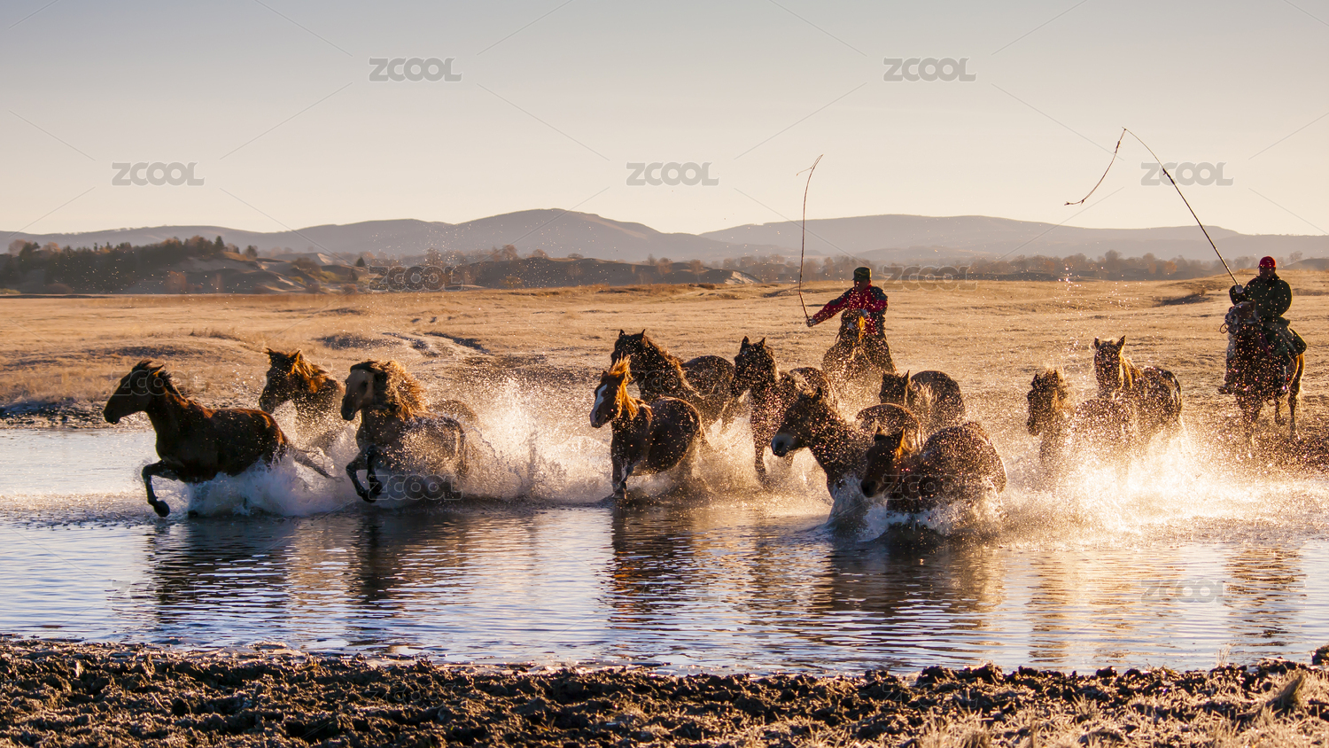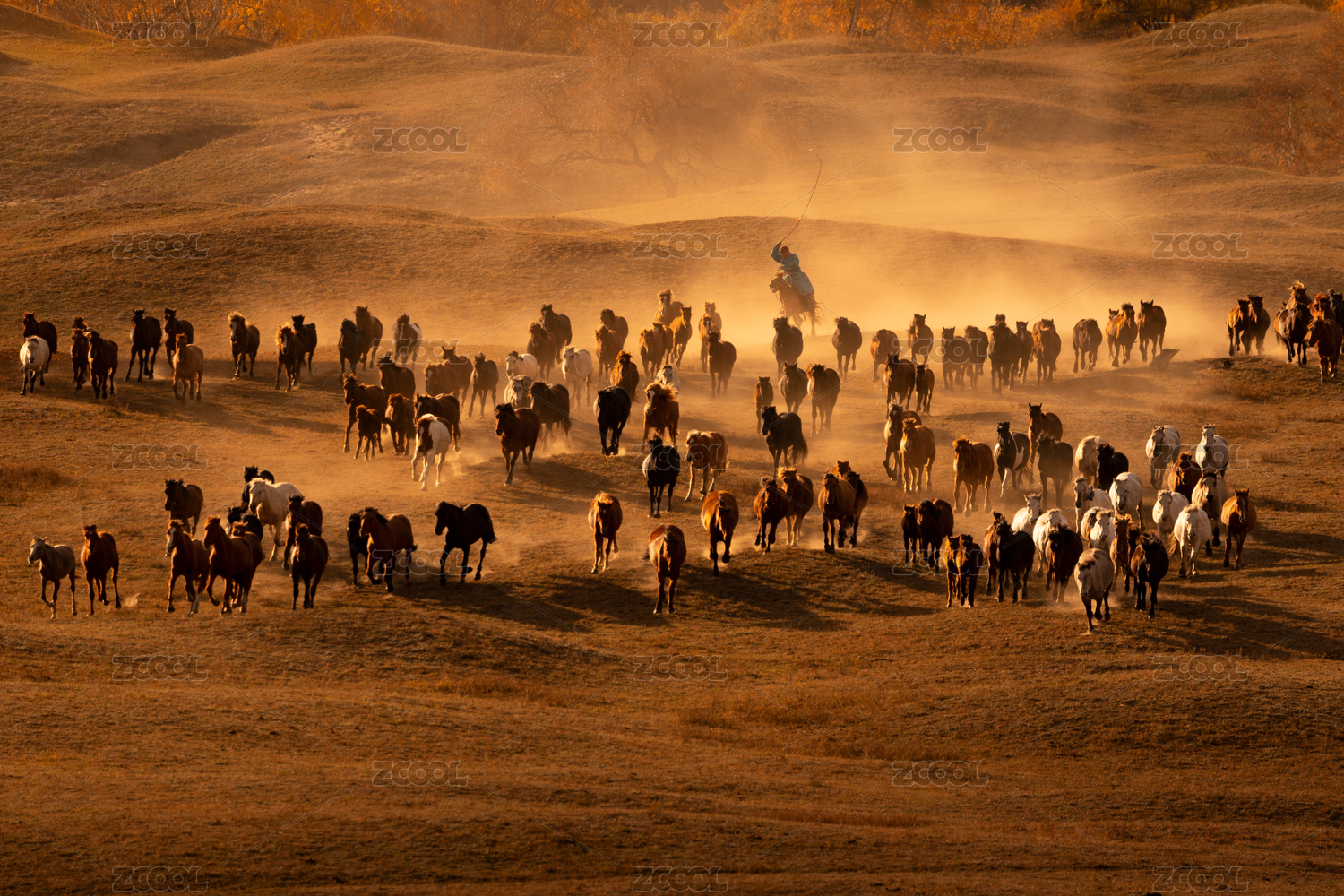 內(nèi)蒙烏蘭布統(tǒng)草原秋日夕陽下萬馬奔騰