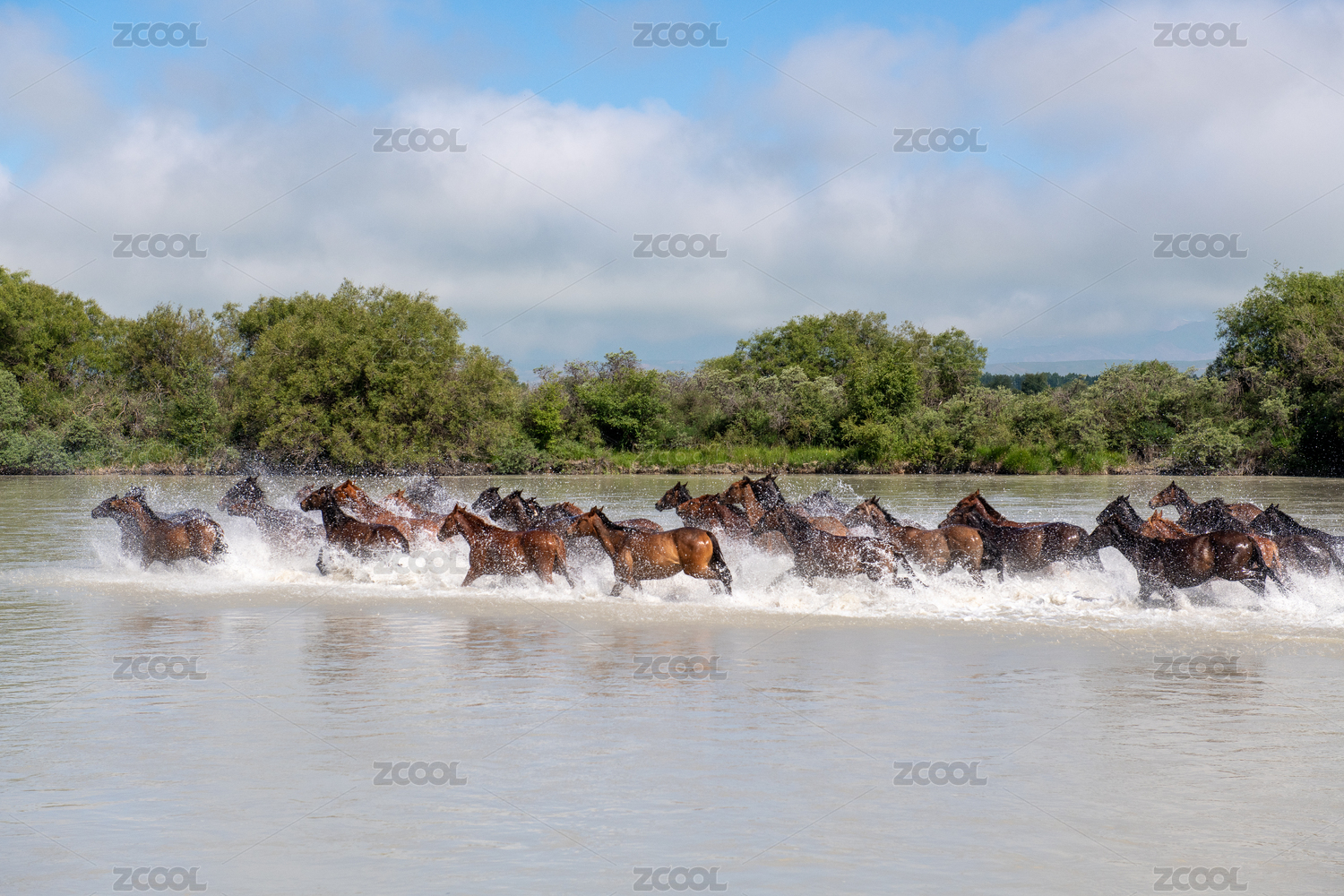 中國新疆伊犁昭蘇濕地公園天馬浴河景觀