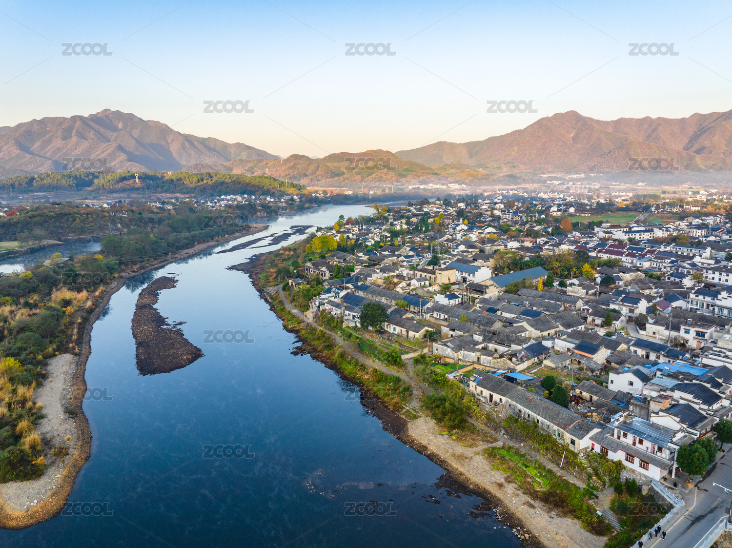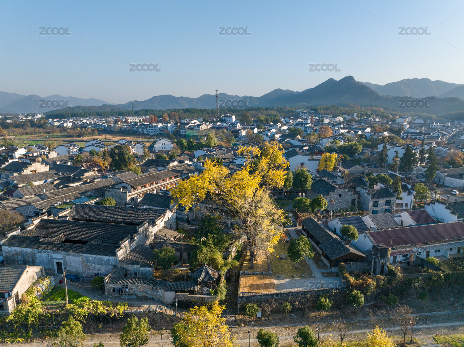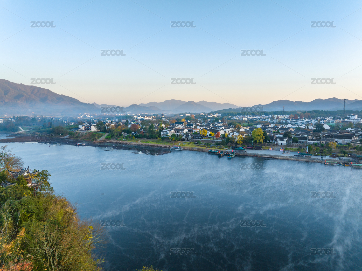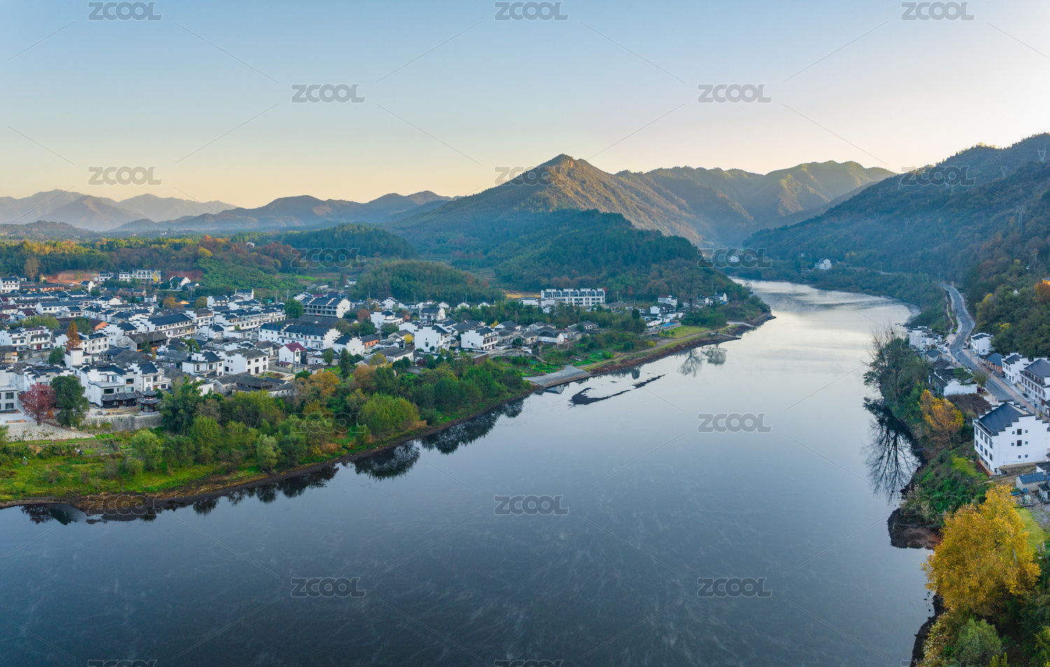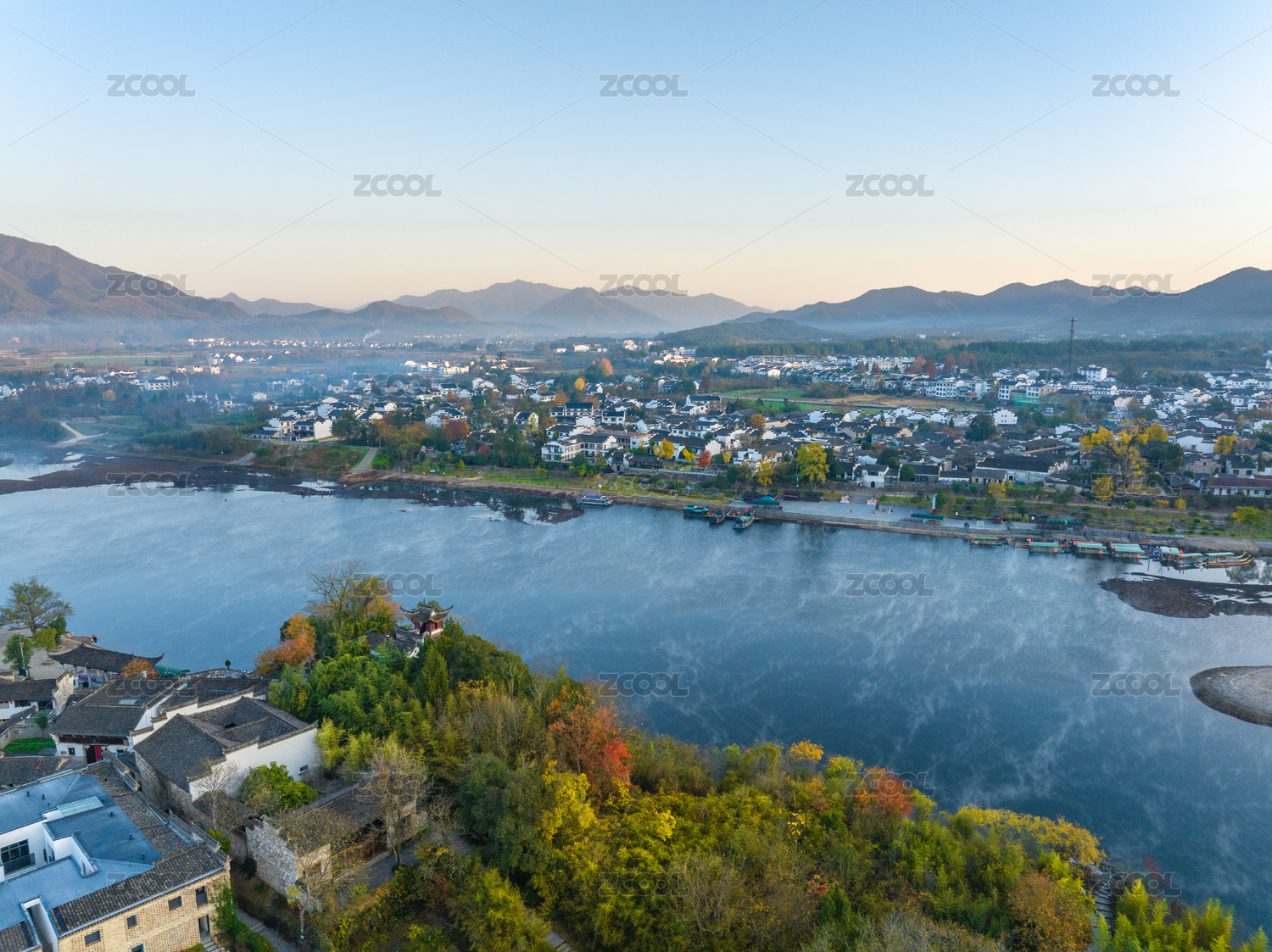 航拍安徽宣城涇縣桃花潭風(fēng)景區(qū)老街村莊