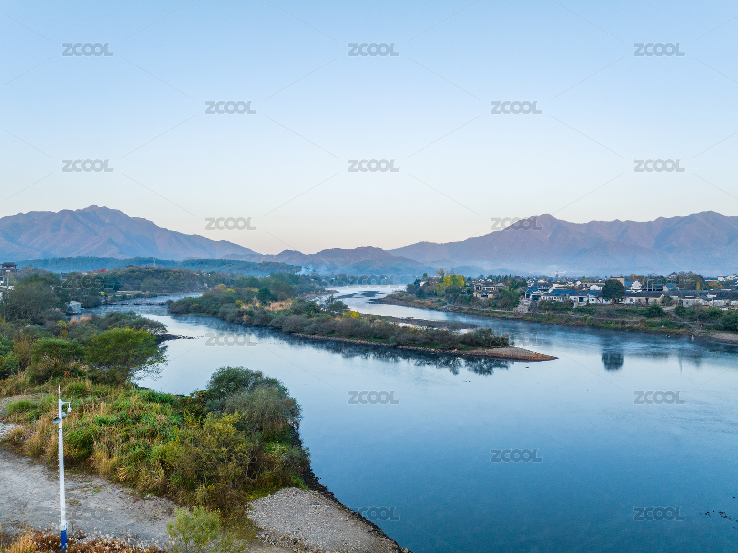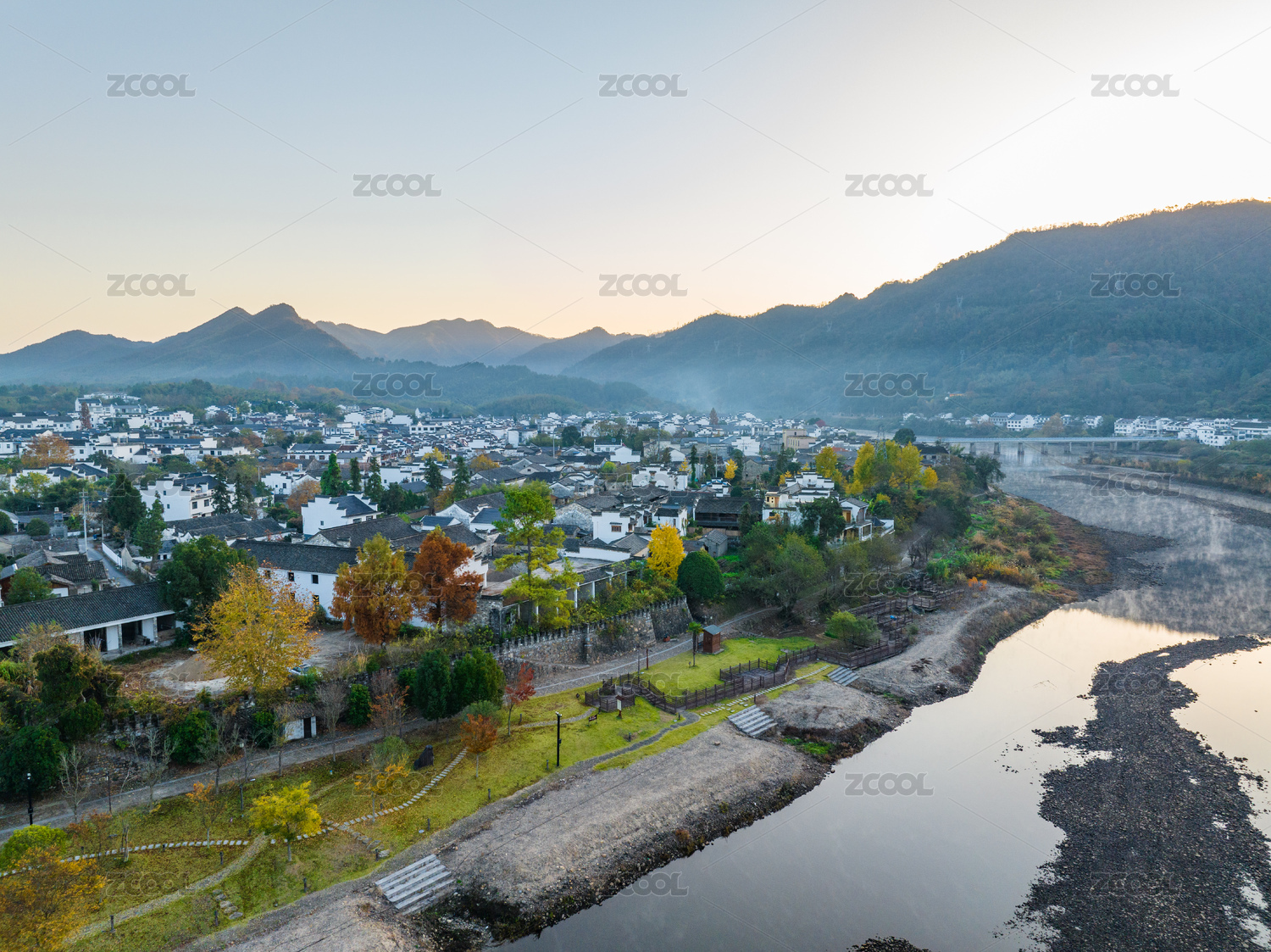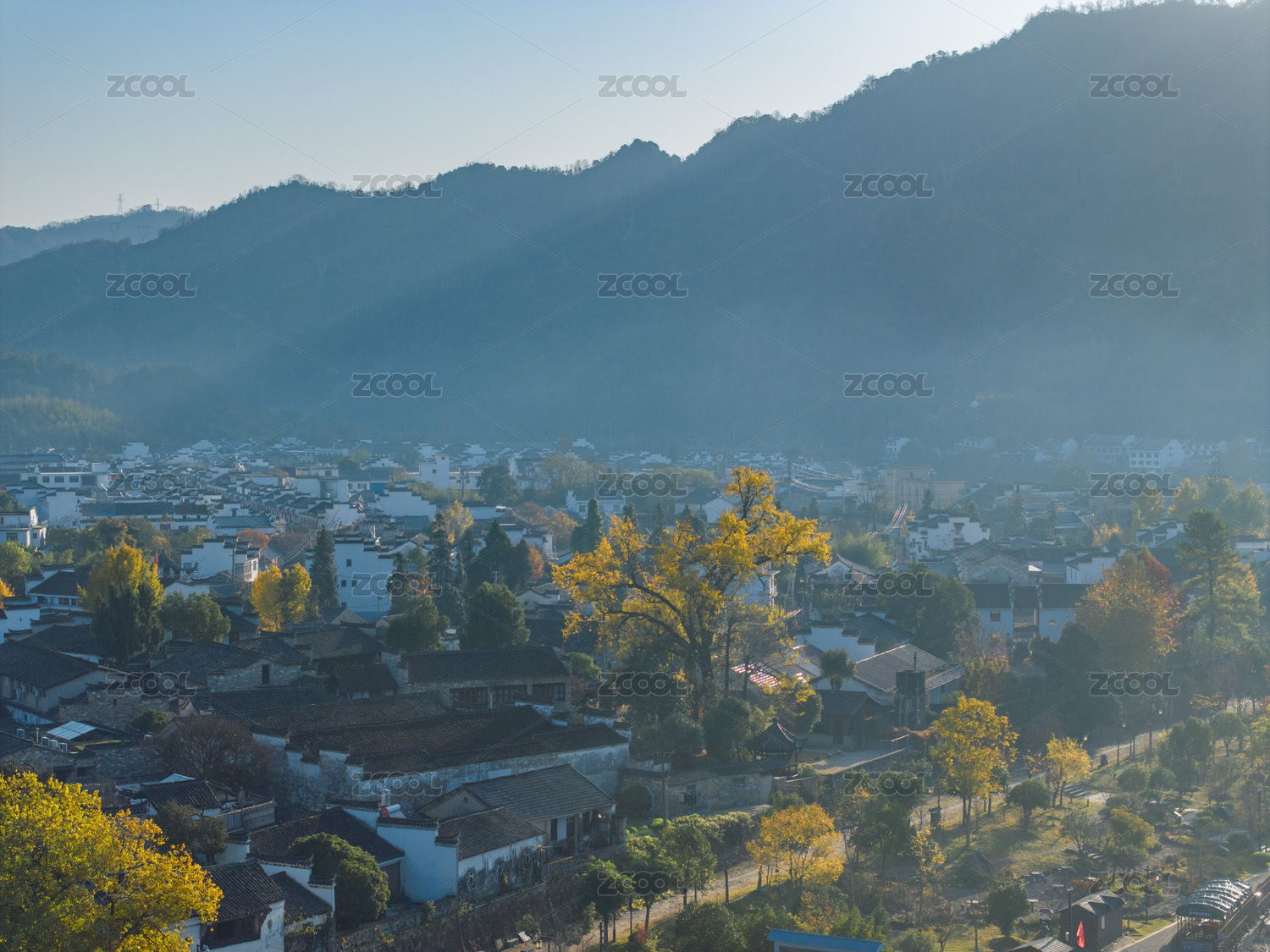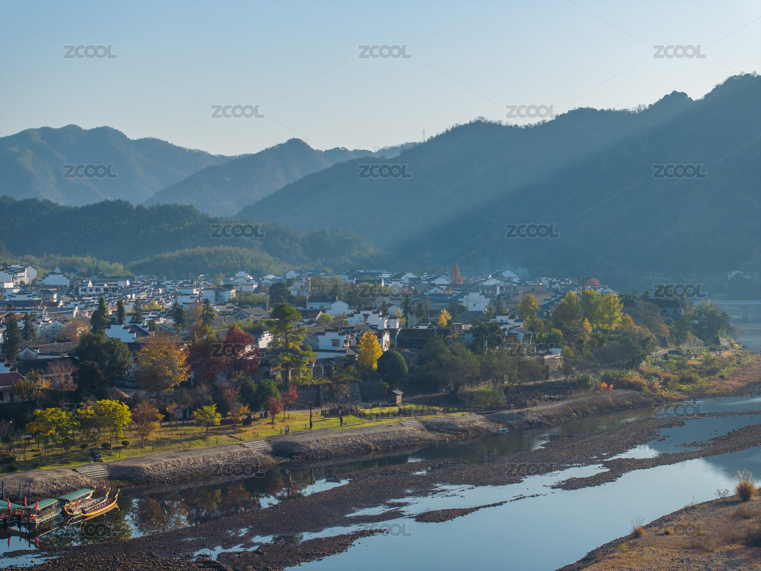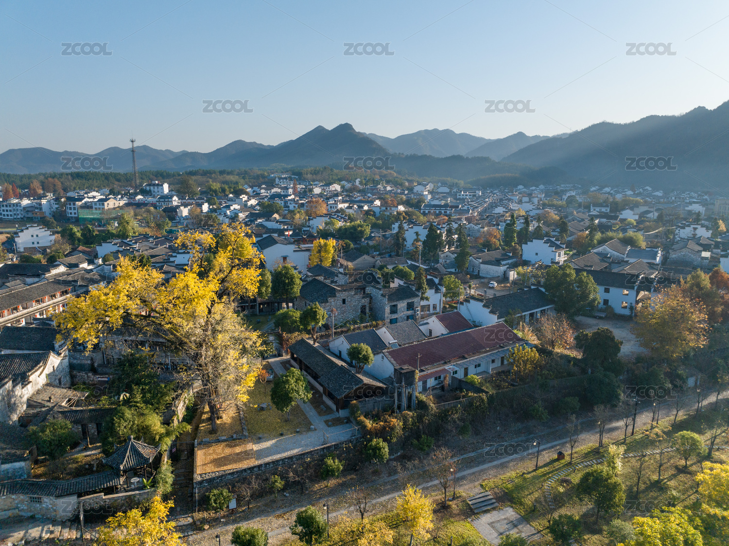 航拍安徽宣城涇縣桃花潭風(fēng)景區(qū)老街村莊
