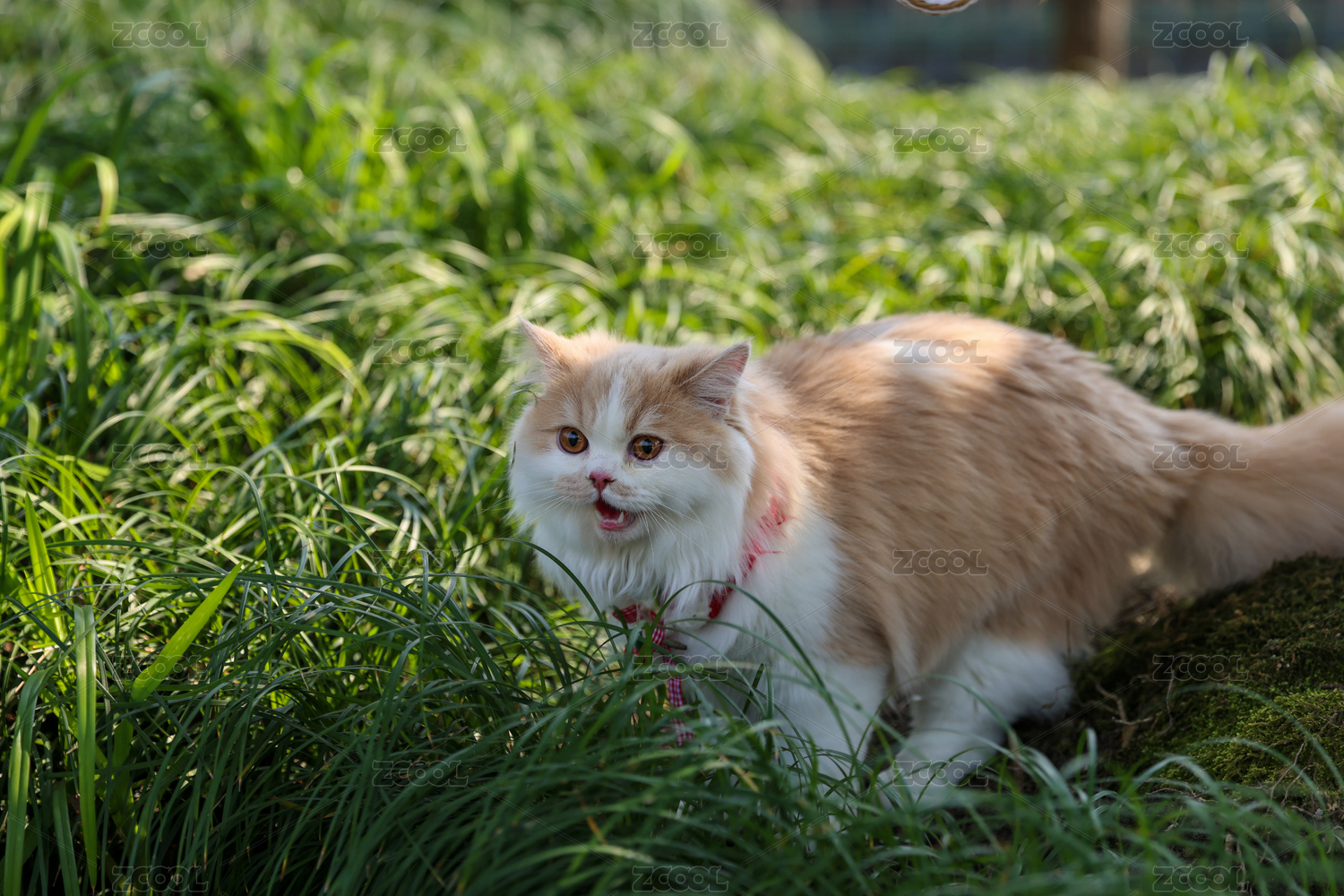 一只在綠色草地上的乳白英國長毛貓