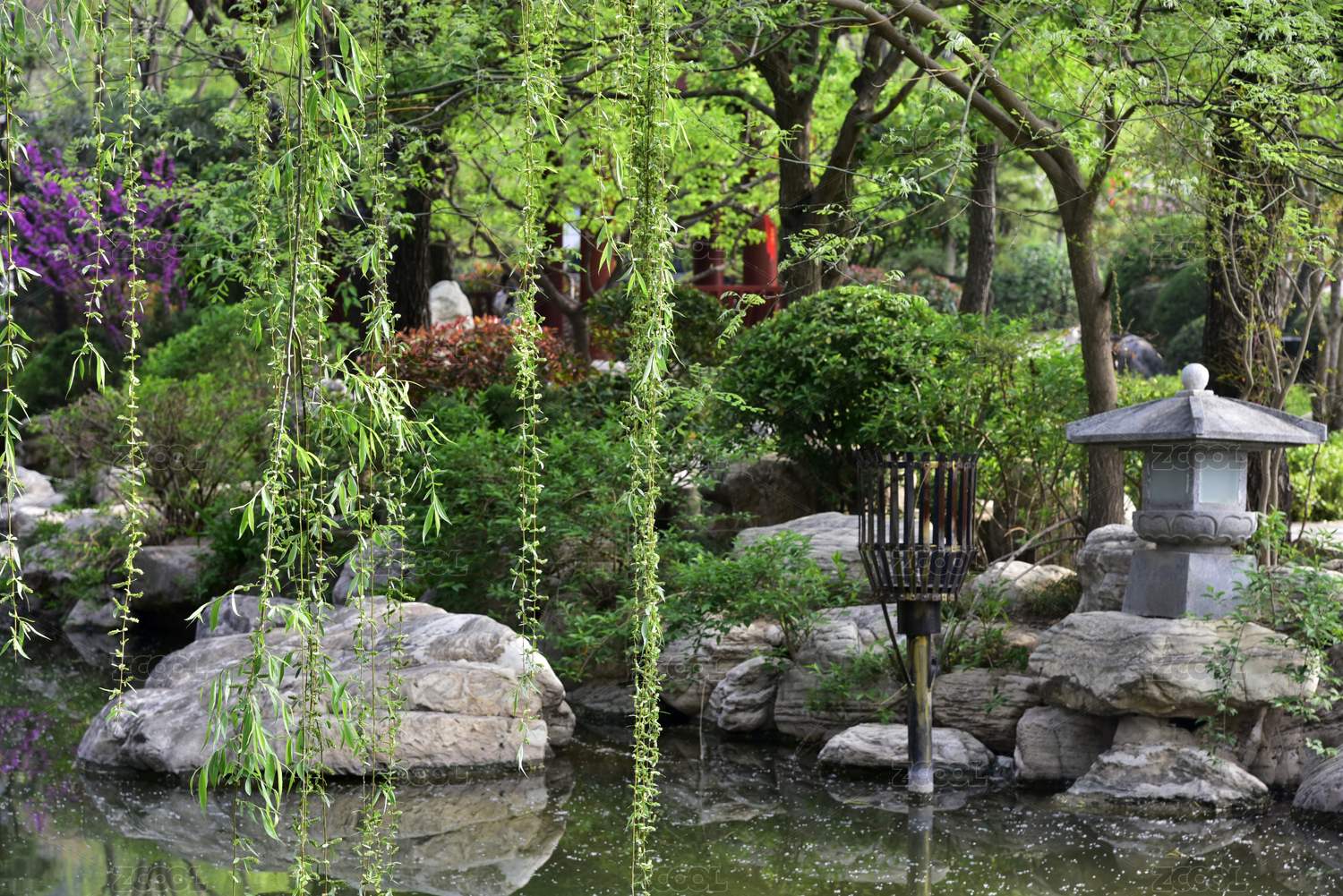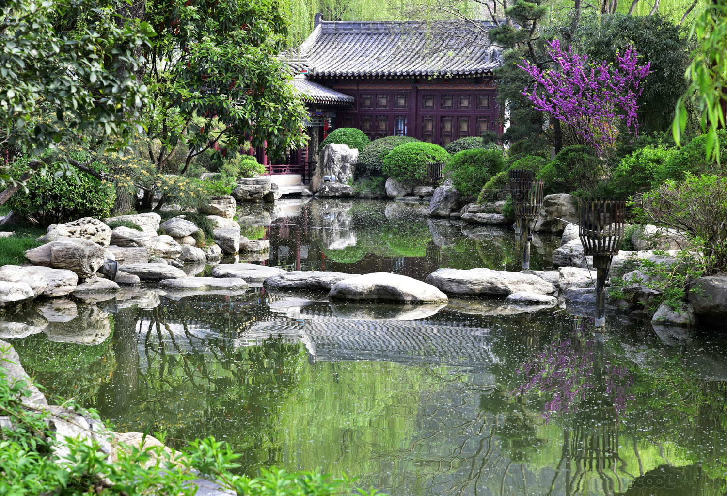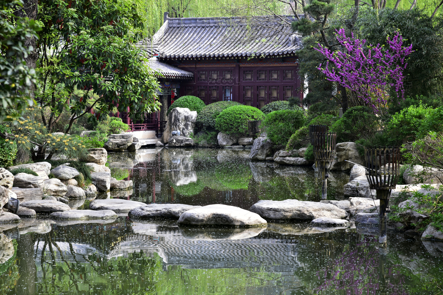 西安華清宮景區(qū)華清池春天的庭院園林風(fēng)光