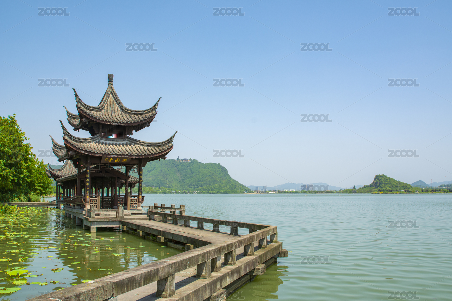 中國浙江杭州蕭山湘湖園林風(fēng)光