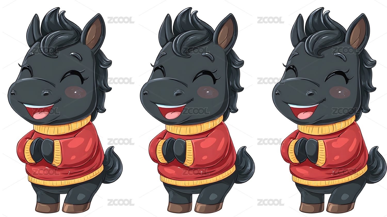 可愛卡通小馬鞠躬笑紅衣毛衣溫暖
