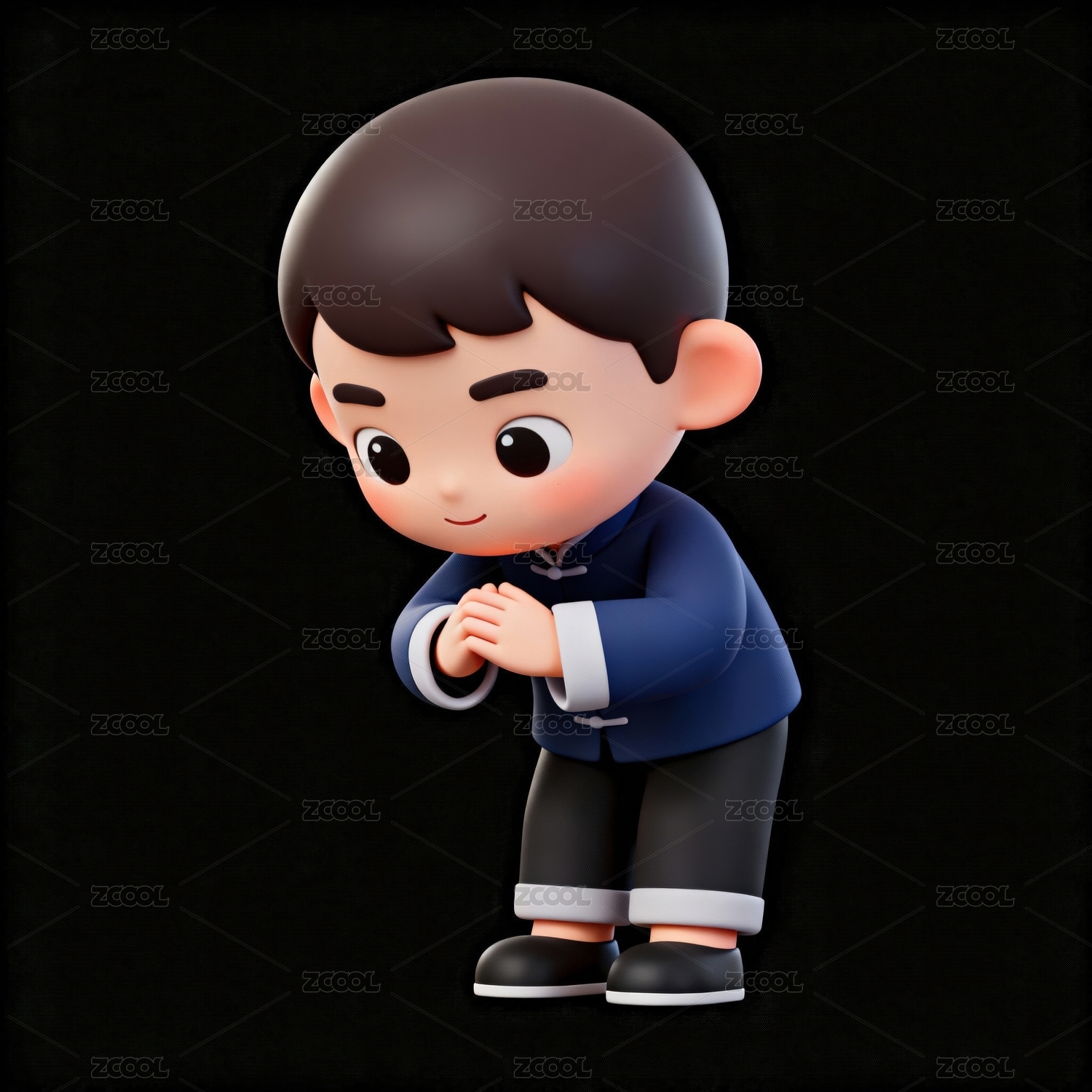 身穿中國(guó)傳統(tǒng)服裝的男子正在鞠躬行禮