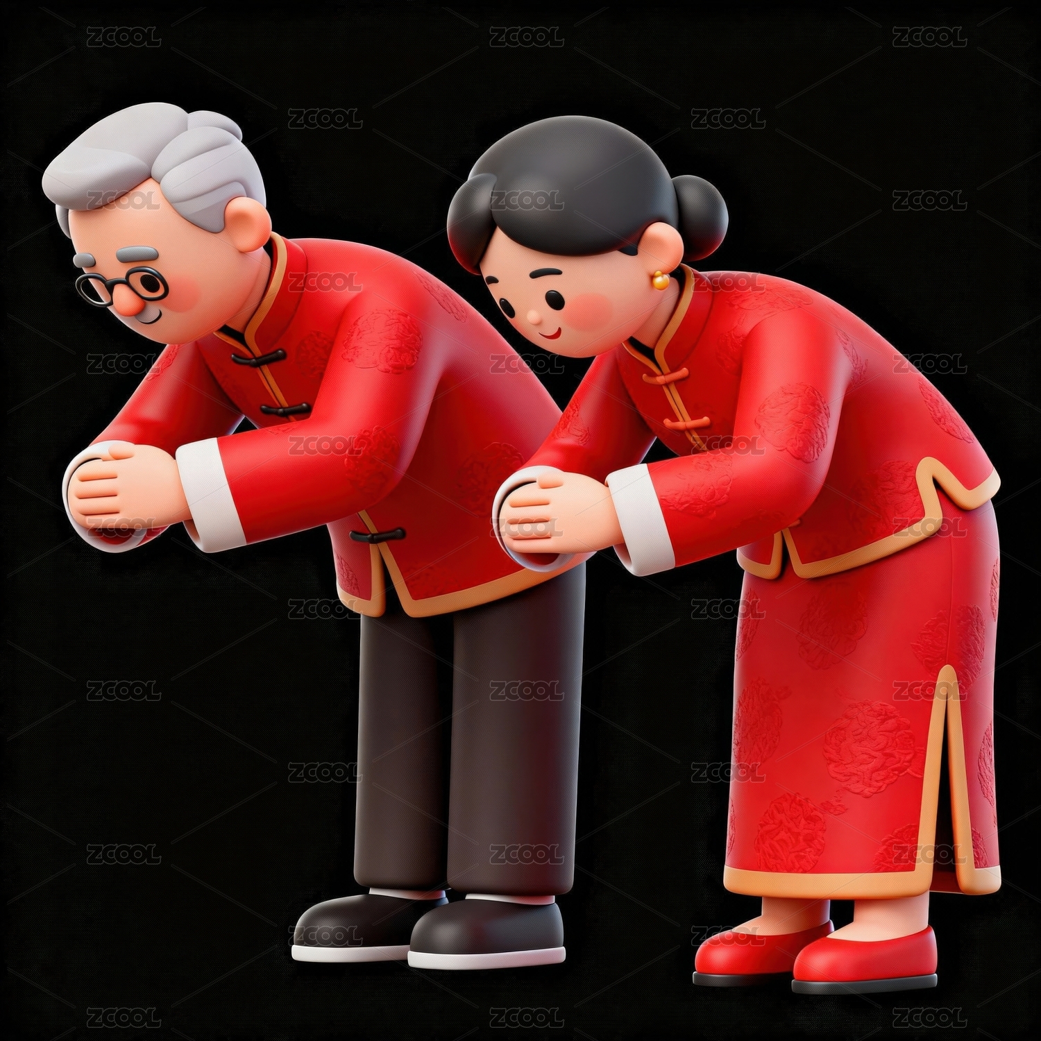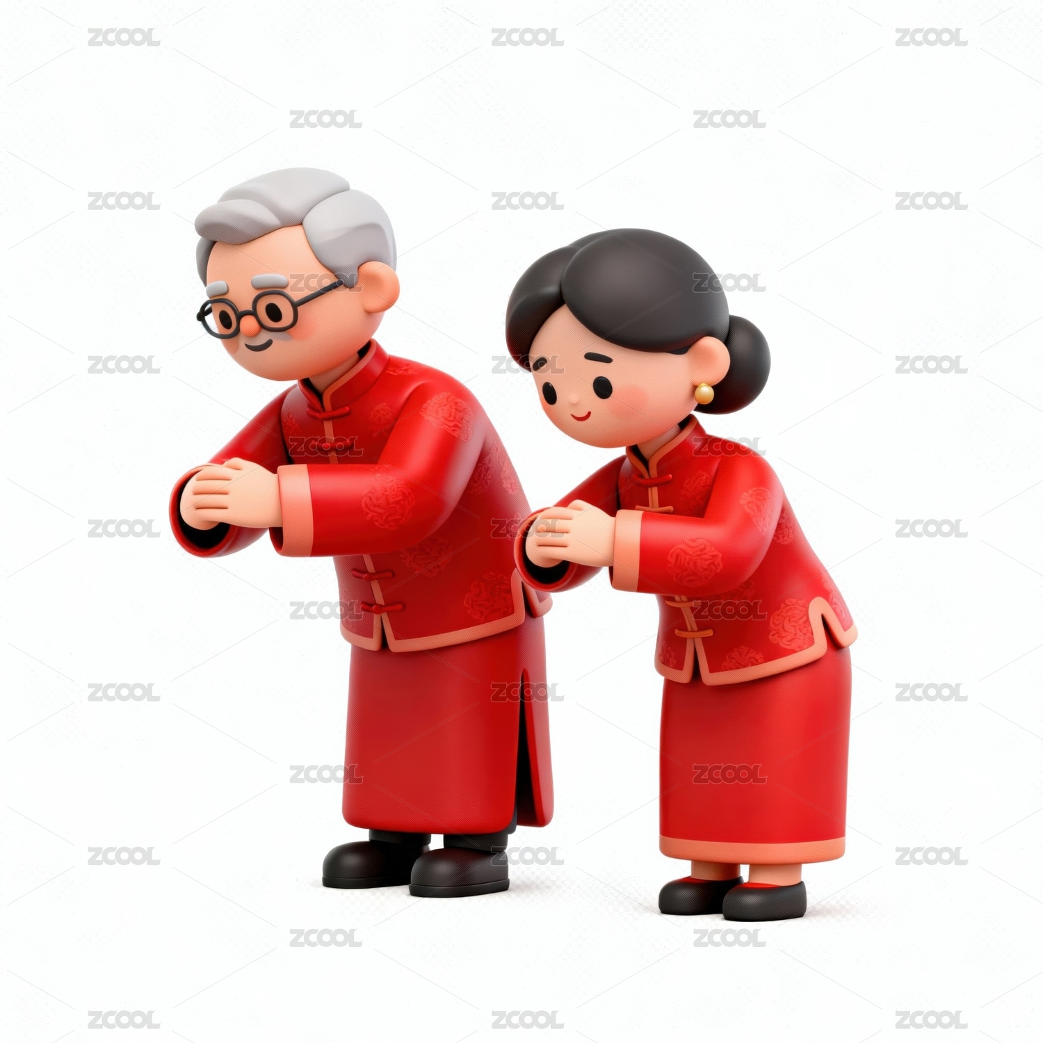 卡通老人夫婦傳統(tǒng)服飾鞠躬