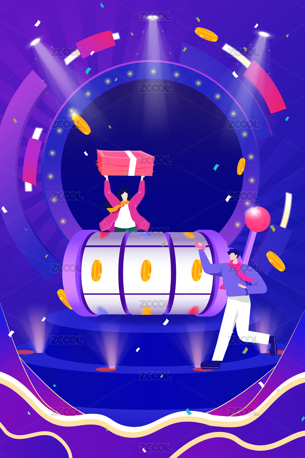 卡通幸運抽獎電商金融活動漸變背景矢量插畫