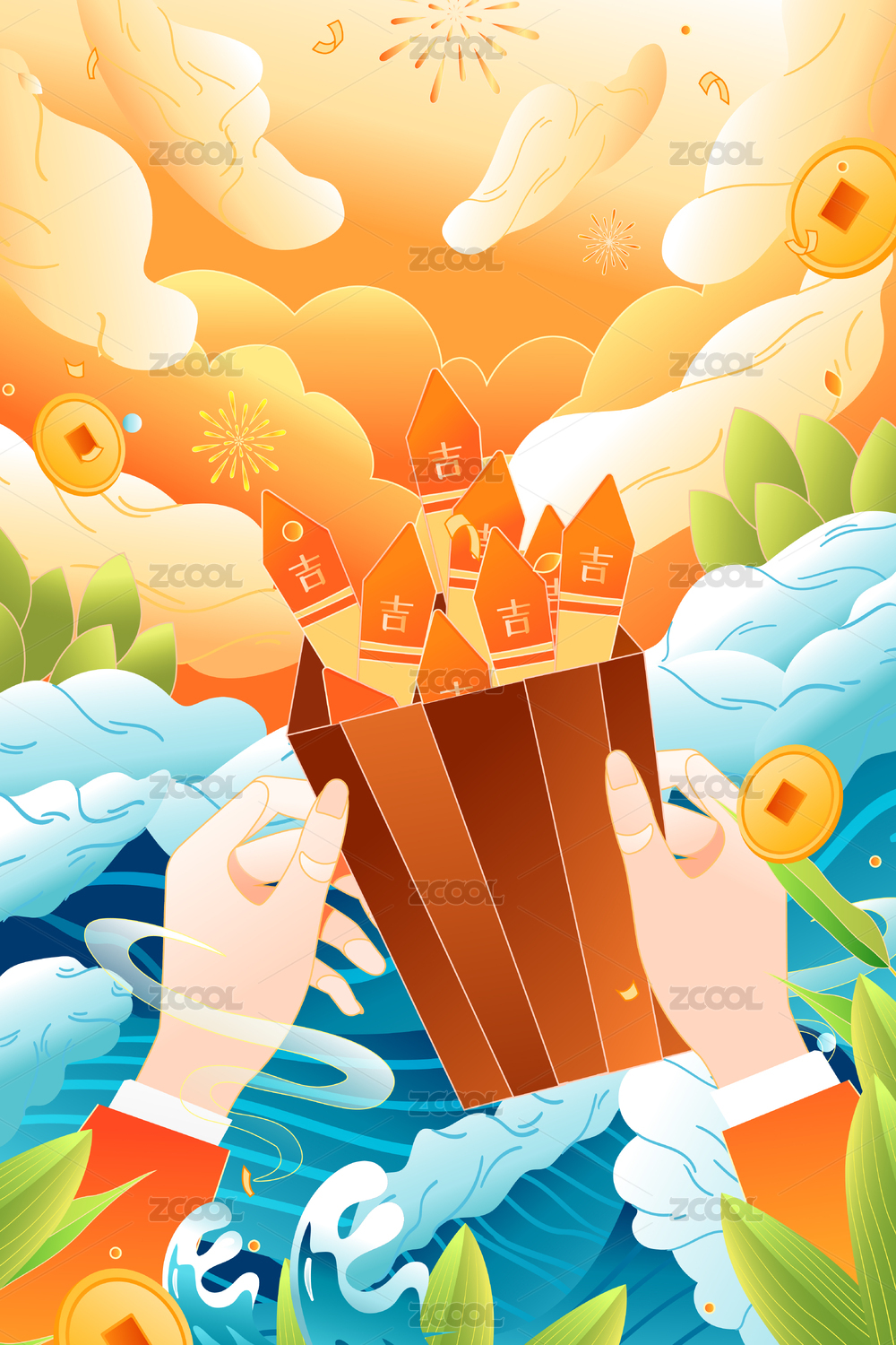 新年傳統(tǒng)喜慶活動幸運錦鯉插畫