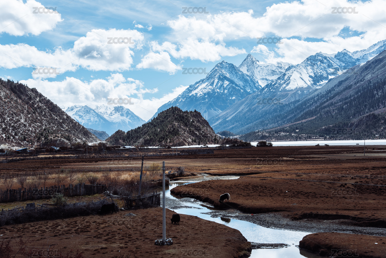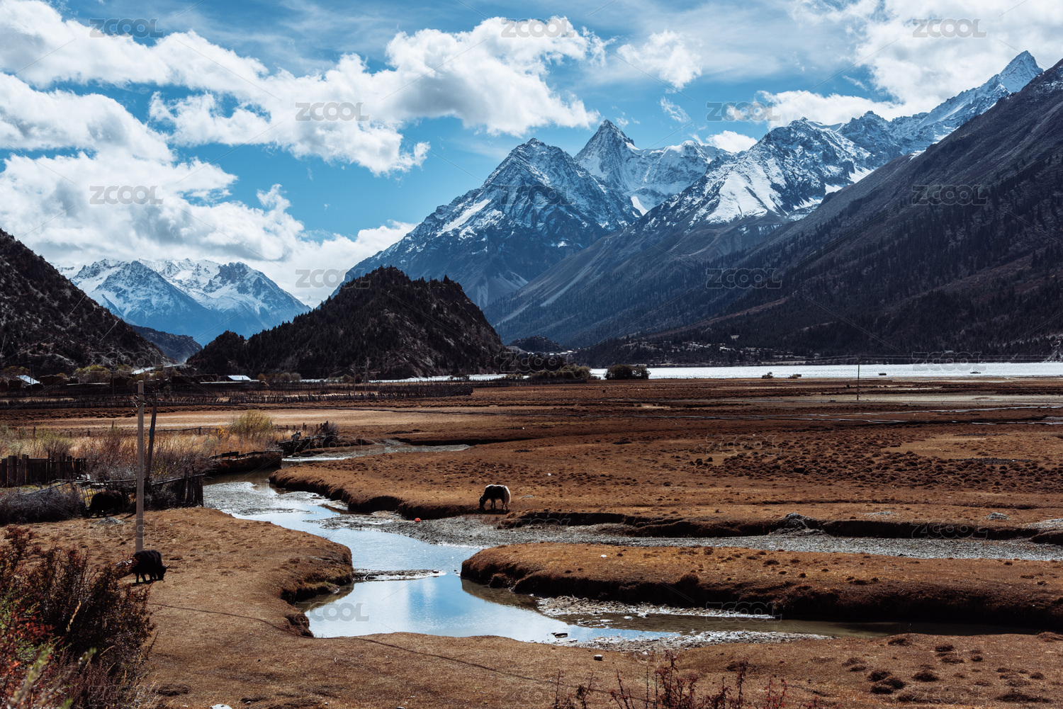 中國(guó)西藏昌都市,美麗的雪山與草原