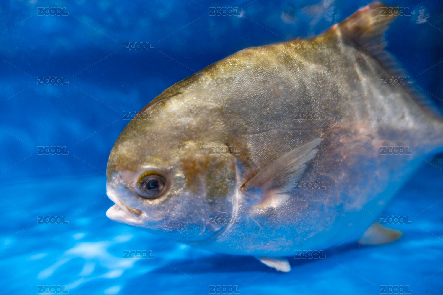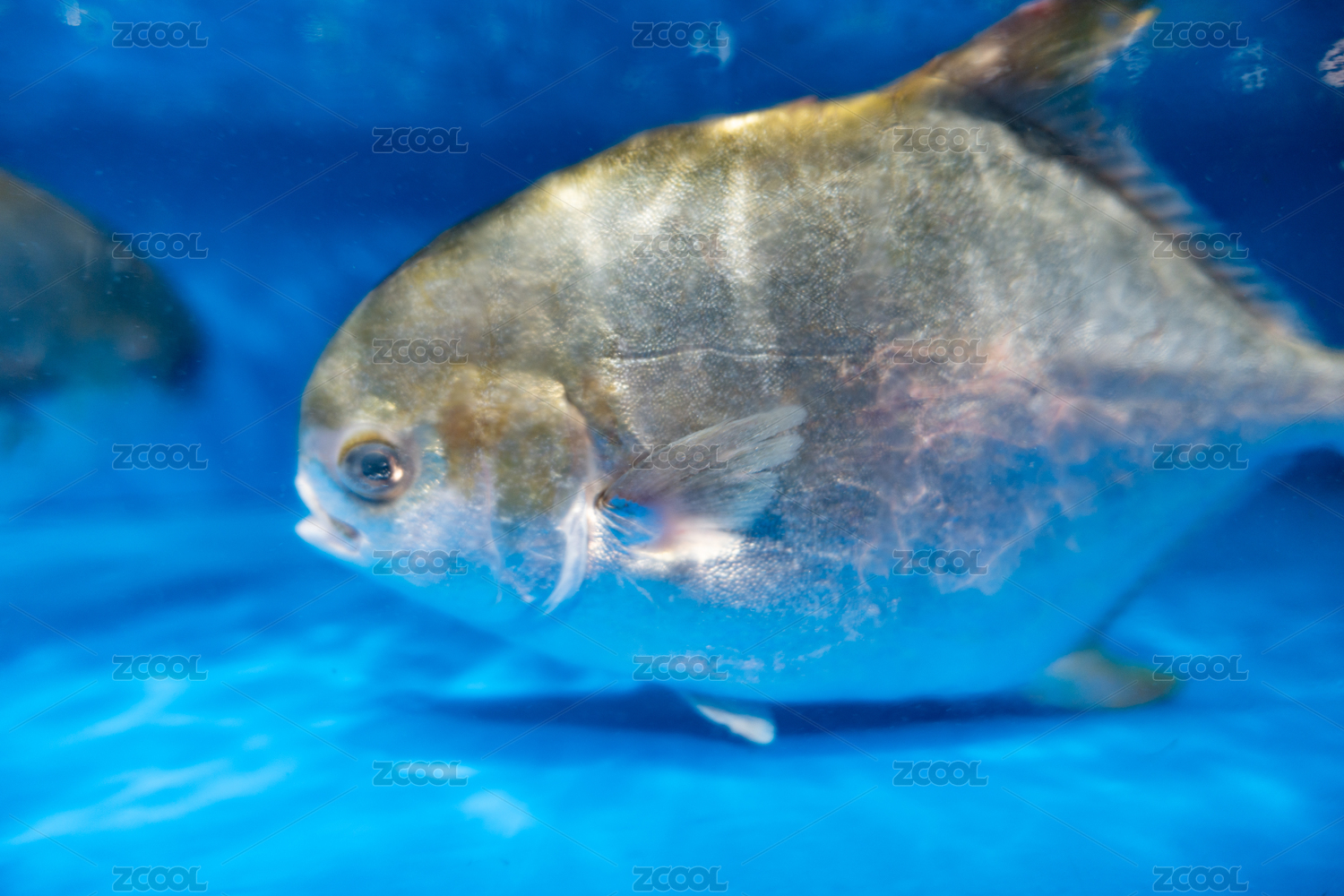 亞洲超市水產(chǎn)區(qū)水池內待售的銀鯧魚特寫