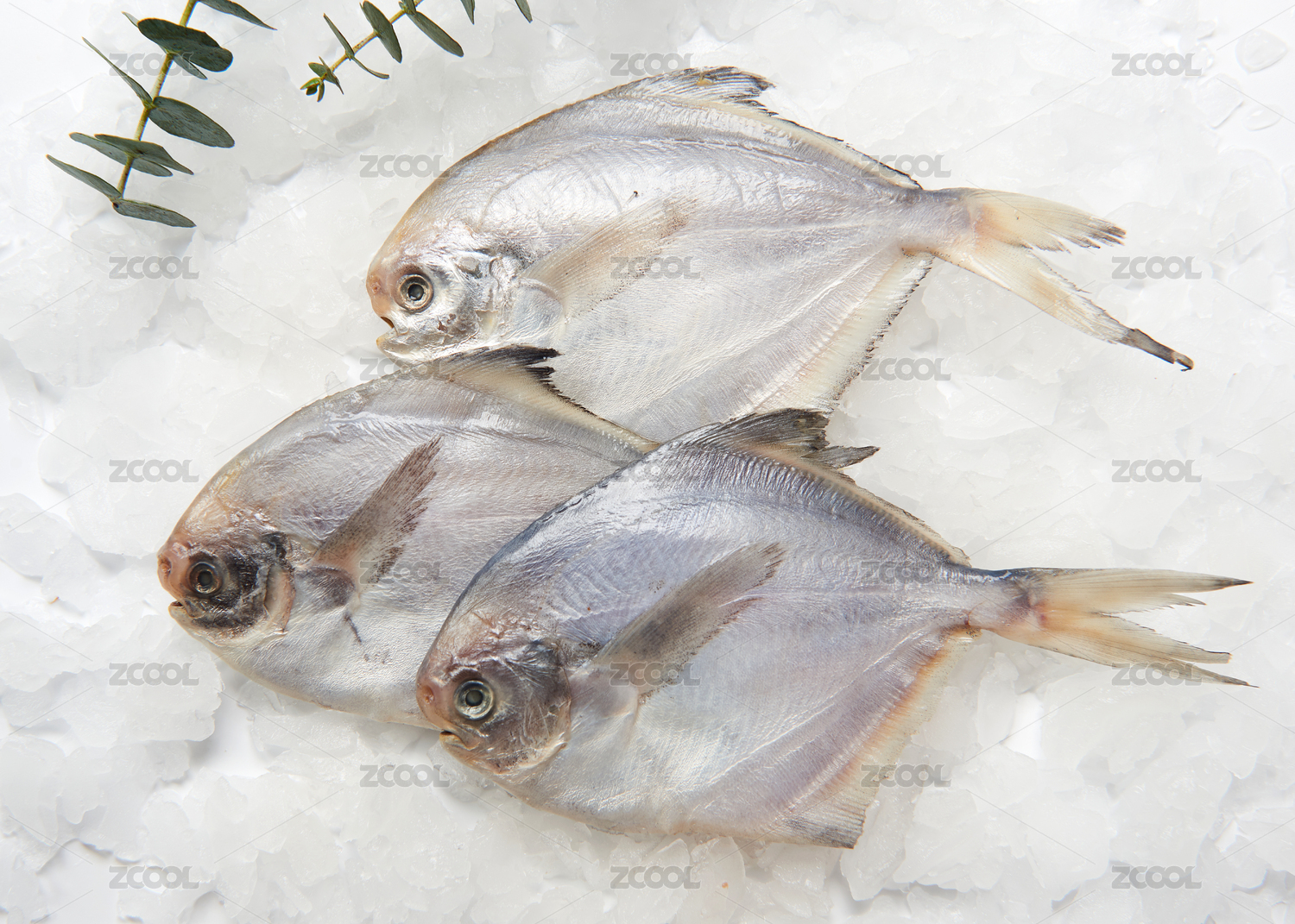 白色背景上擺放的冰鮮白鯧魚