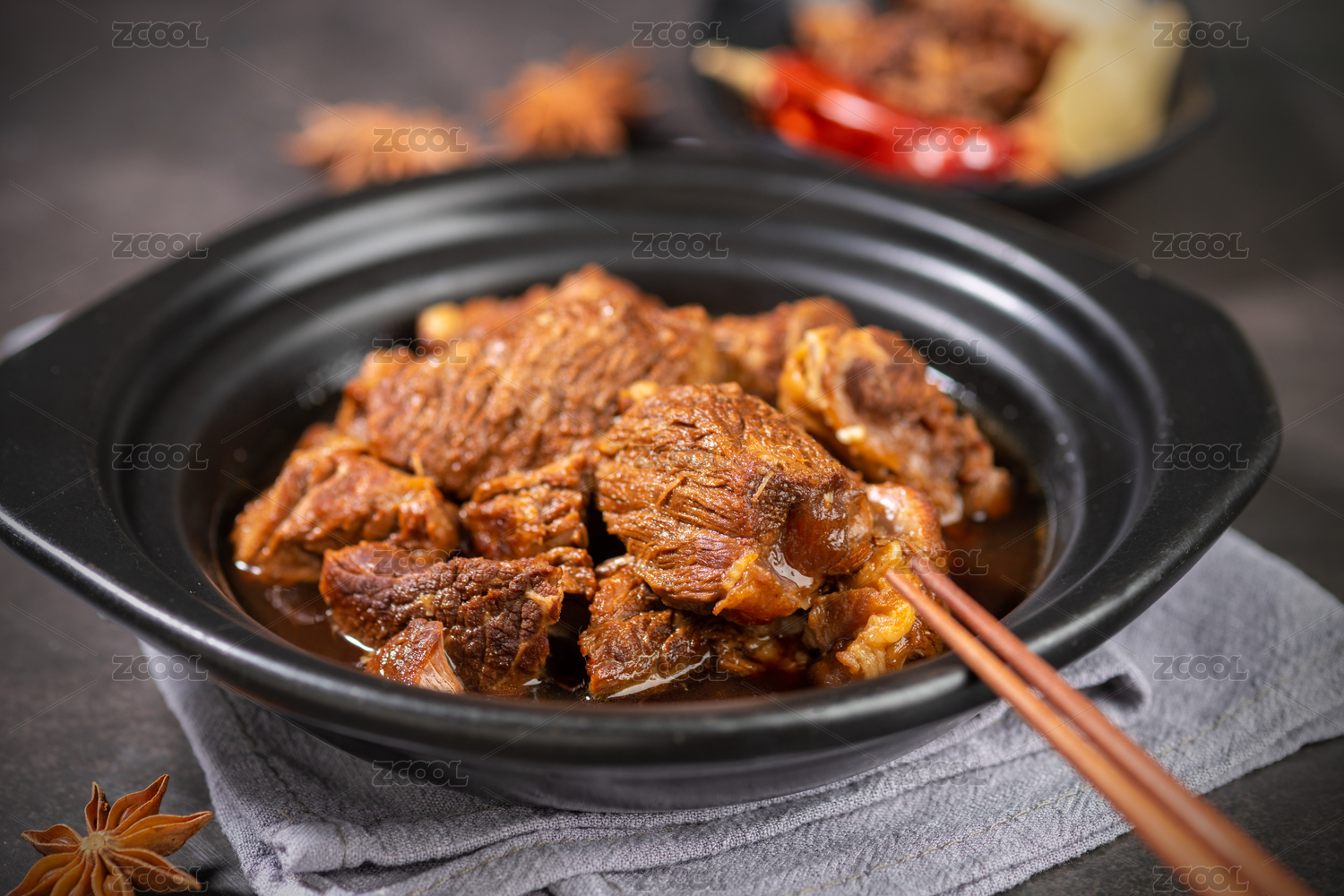 一盤紅燒牛肉燉牛肉特寫深色背景