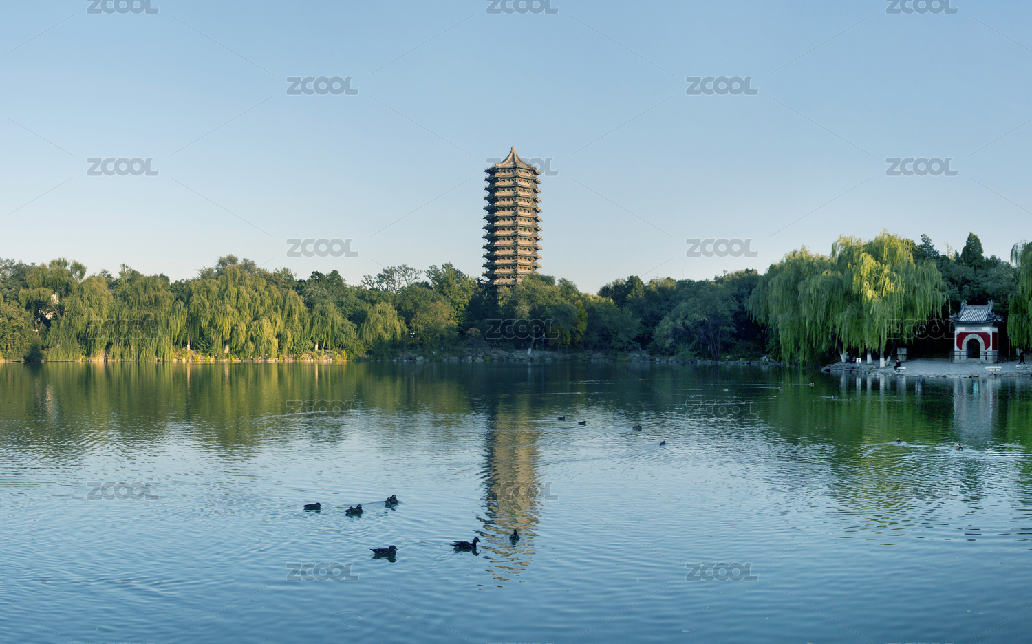 北京大學(xué)地標(biāo)建筑天際線線描剪影背景素材圖