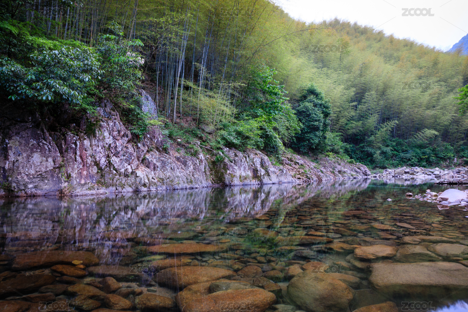 浙江安吉餓浙北大峽谷的竹林與池塘