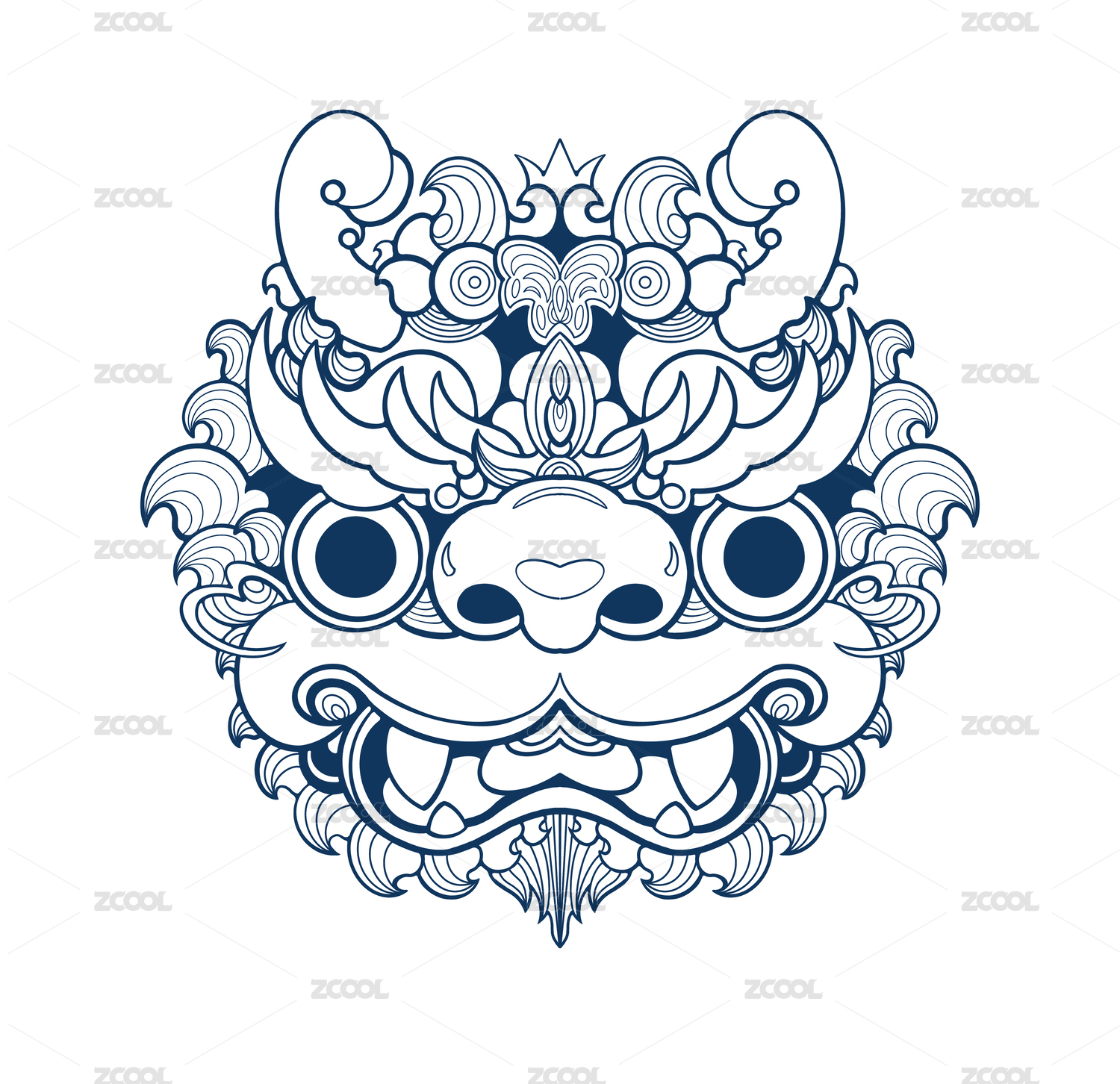 國(guó)潮龍卡通形象十二生肖線描潮流裝飾紋樣
