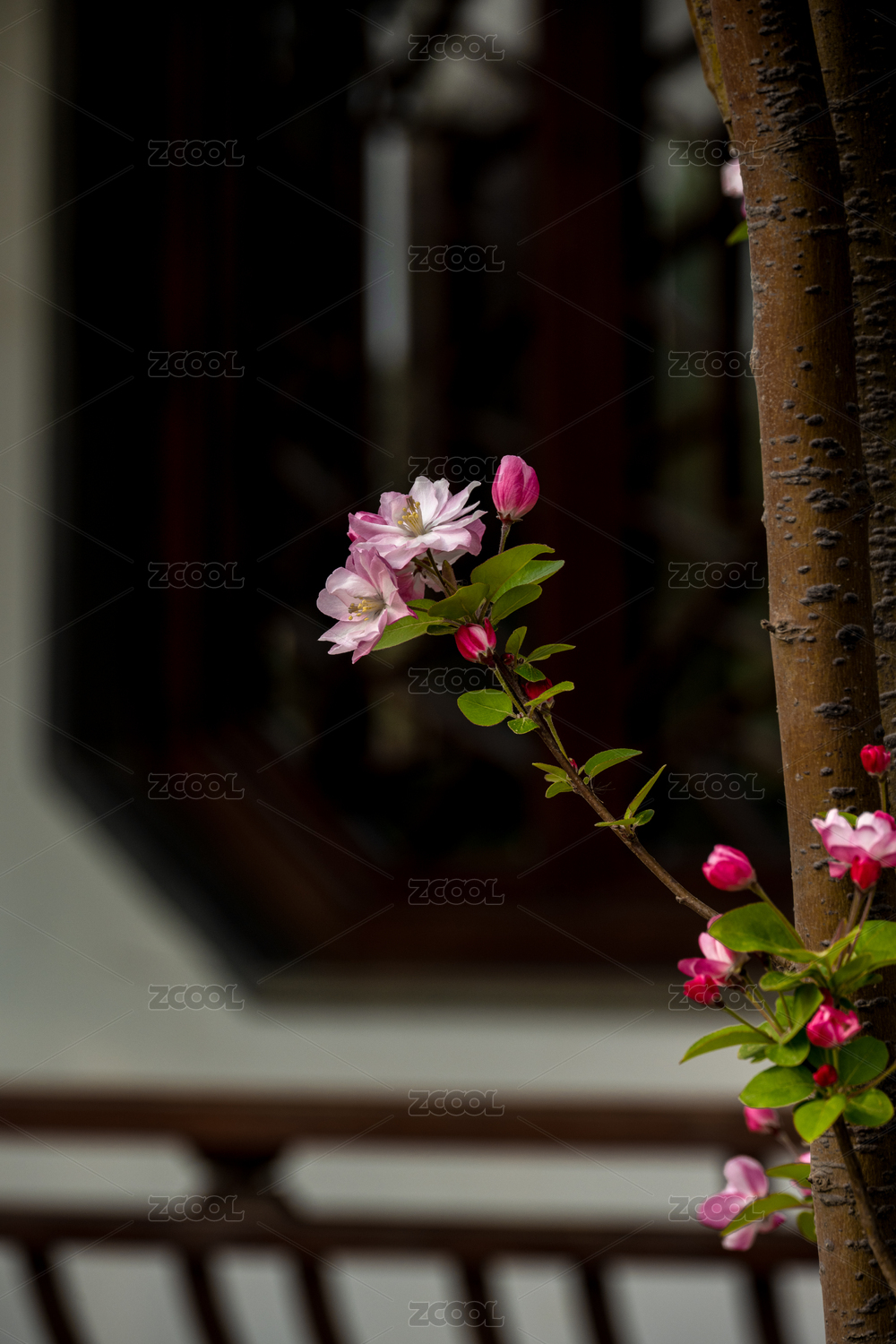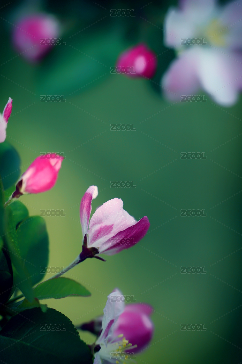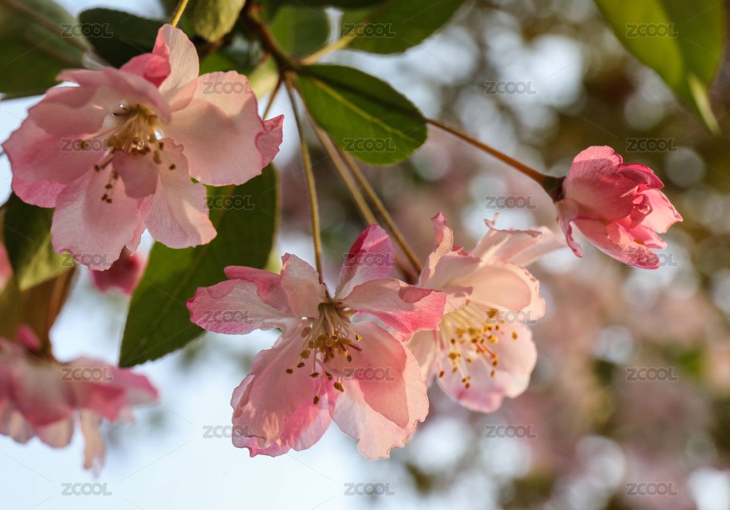 春天盛開的粉紅色西府海棠花特寫
