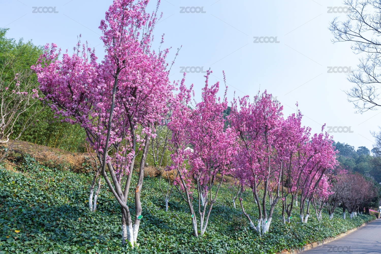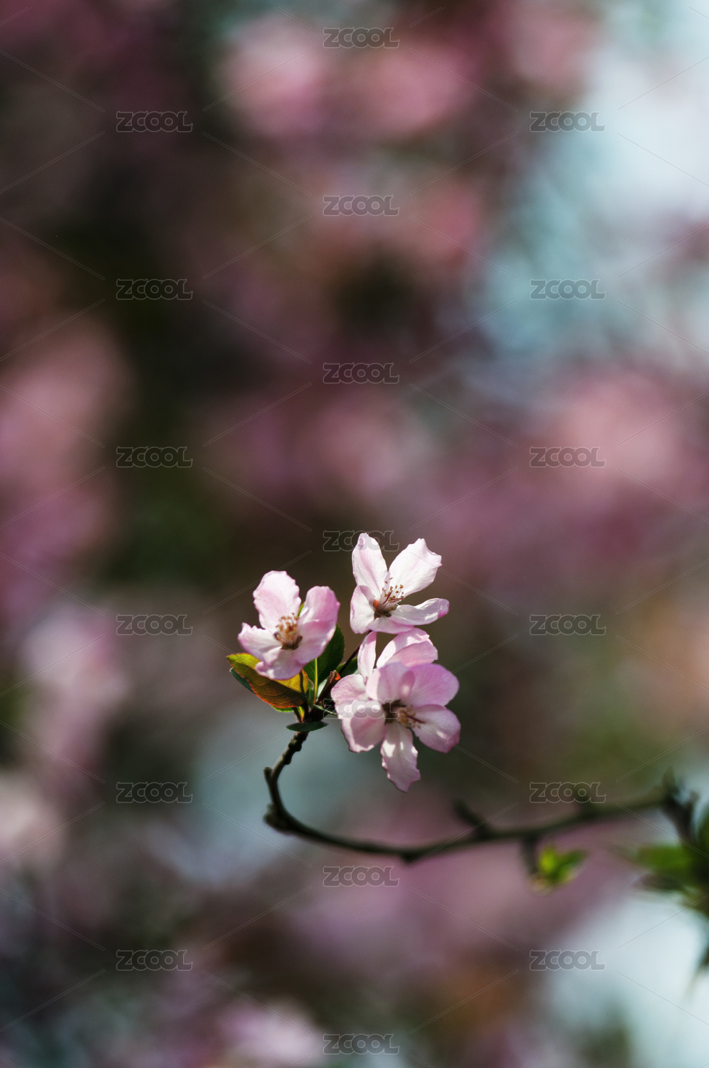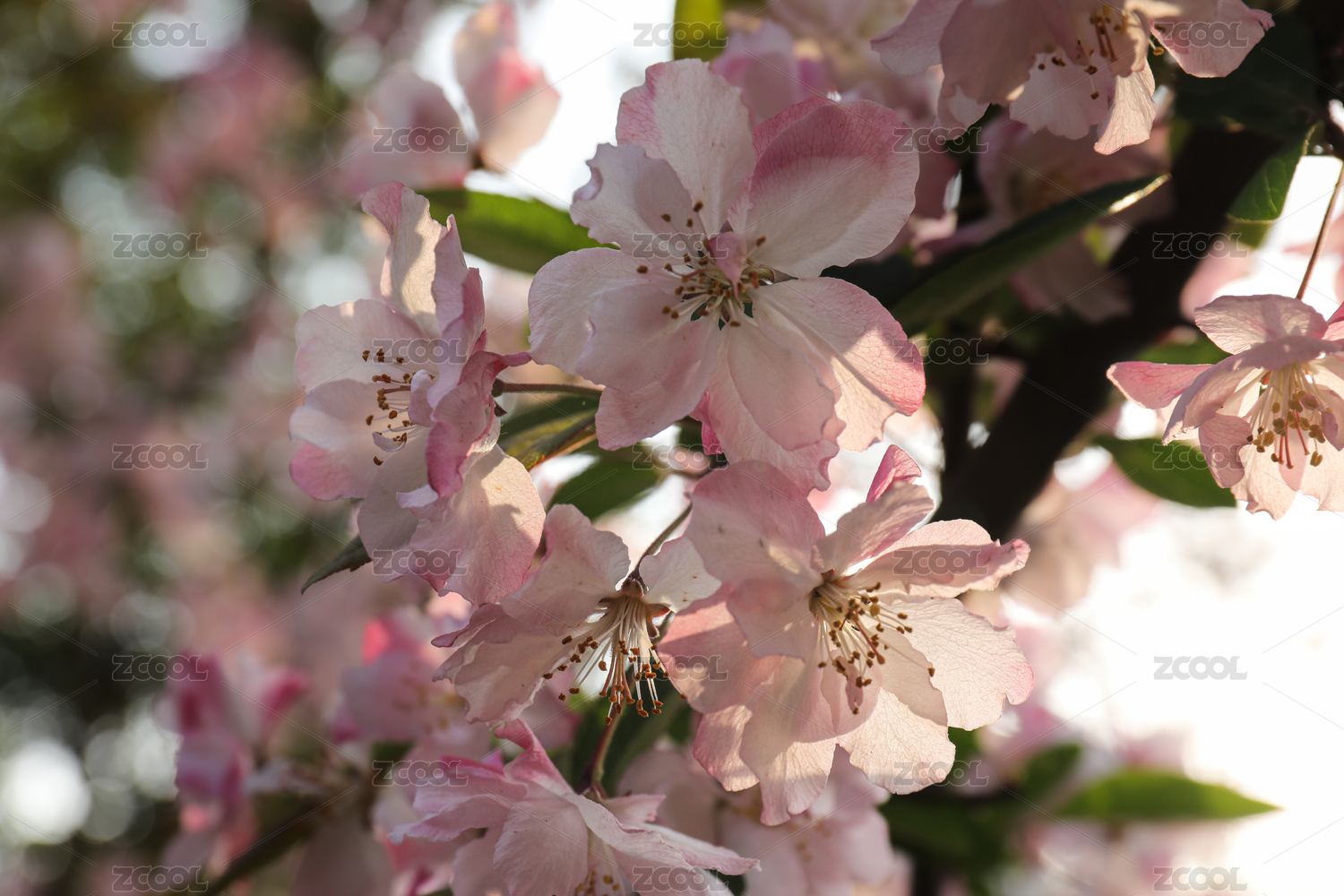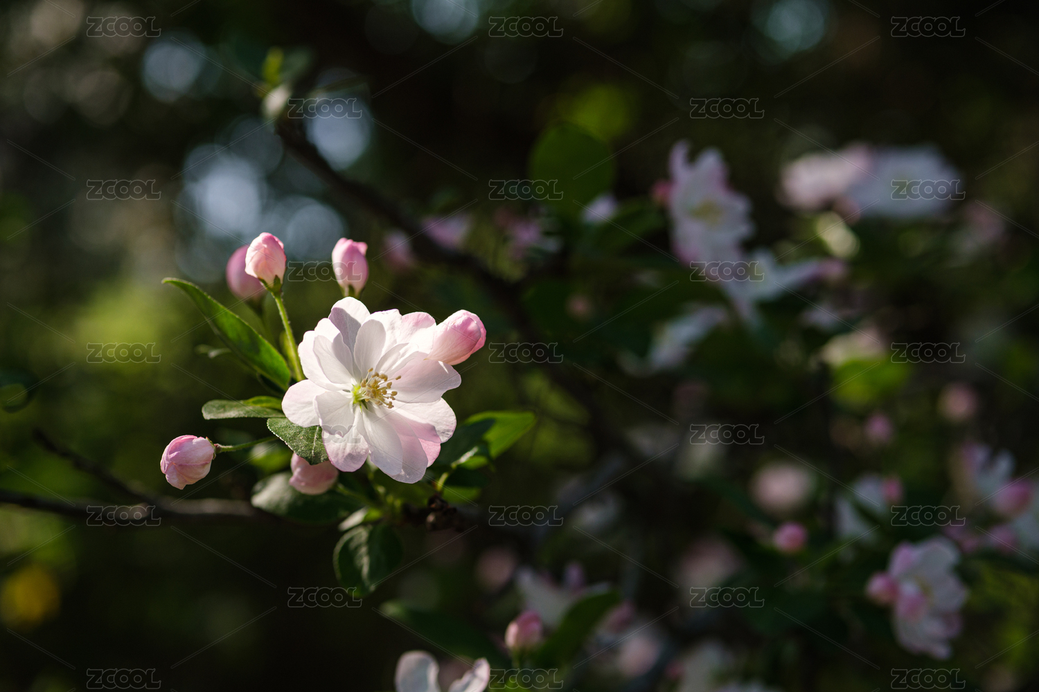 春季樹林里盛花期的西府海棠