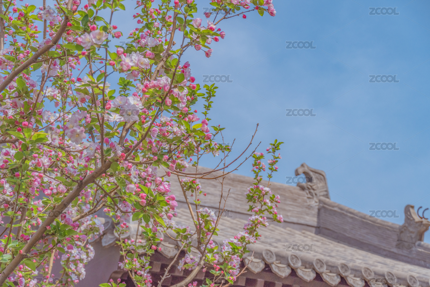 藍天盛開的西府海棠