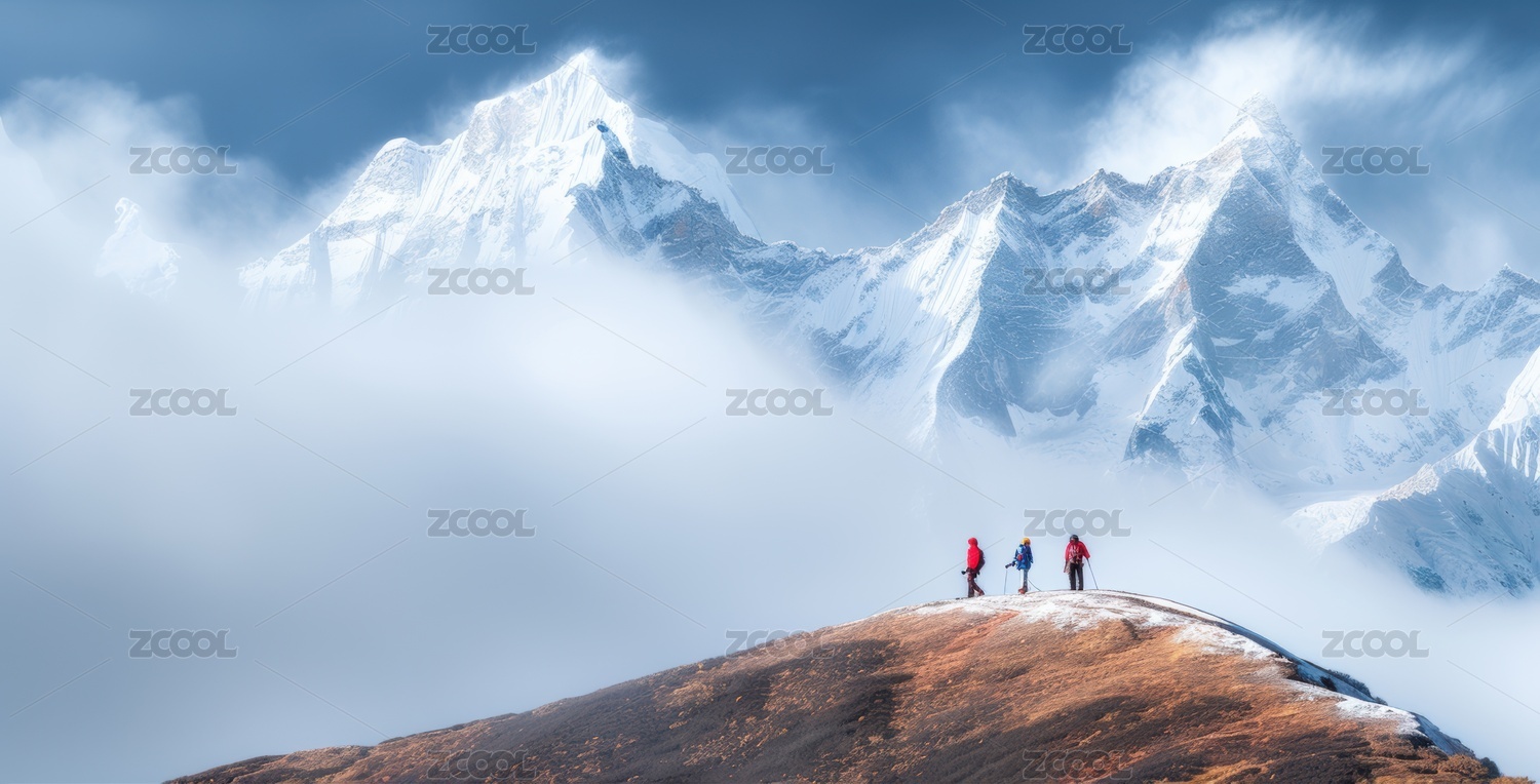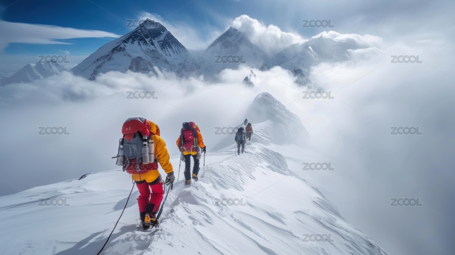 勵(lì)志團(tuán)隊(duì)攀登勇往直前徒步夢想登頂雪山