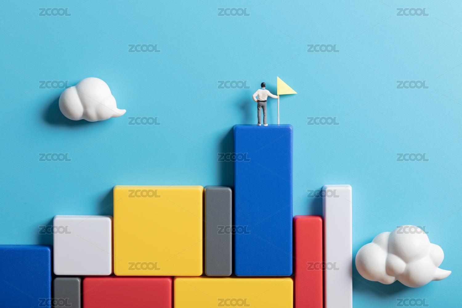 微縮創(chuàng)意幾何方塊組合的山與登頂?shù)娜?/div>