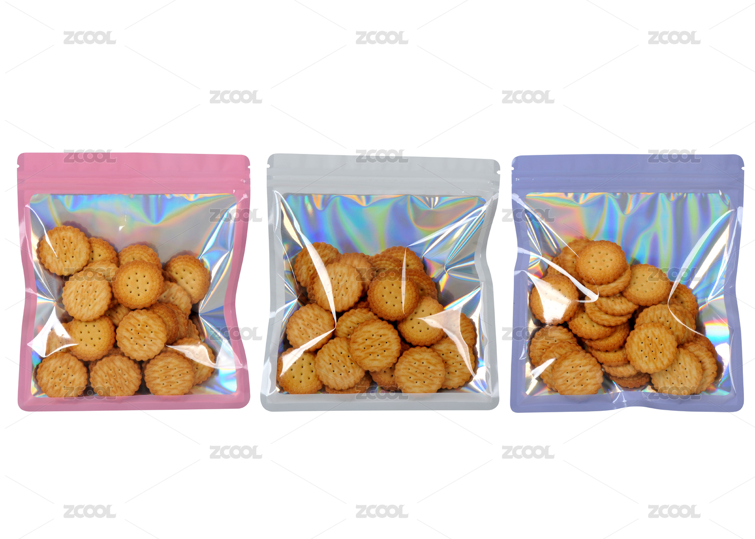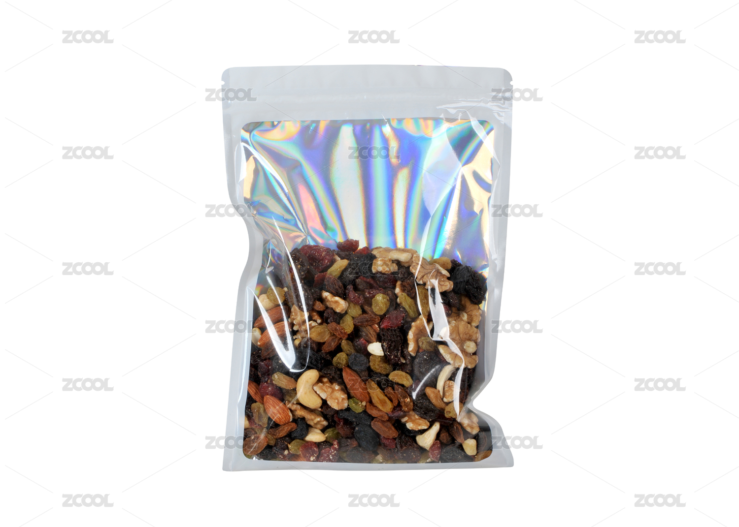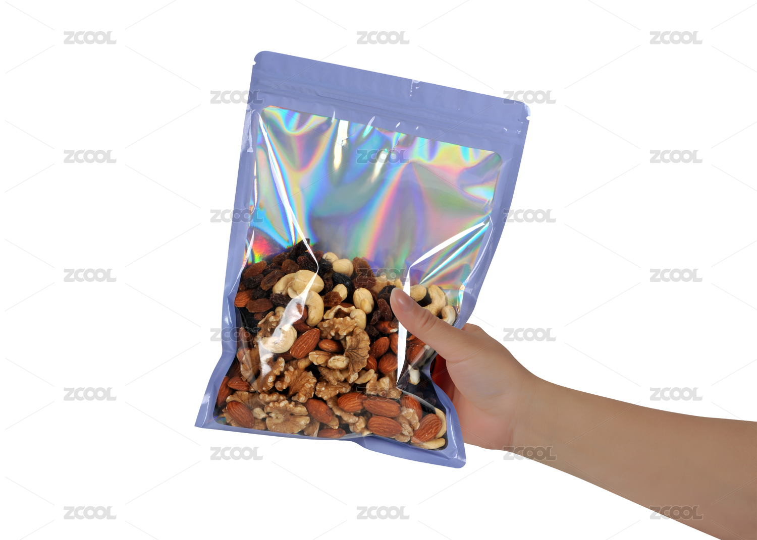 手拿一款裝堅(jiān)果的防潮幻彩鐳射自封袋