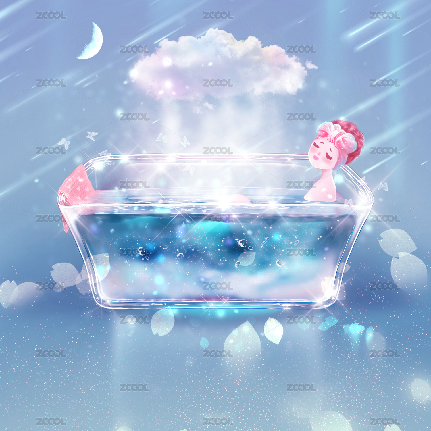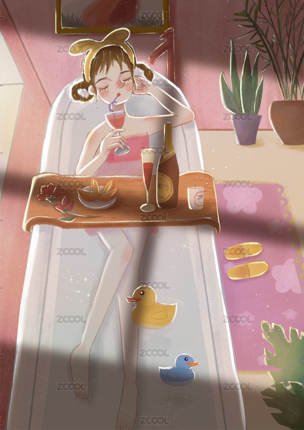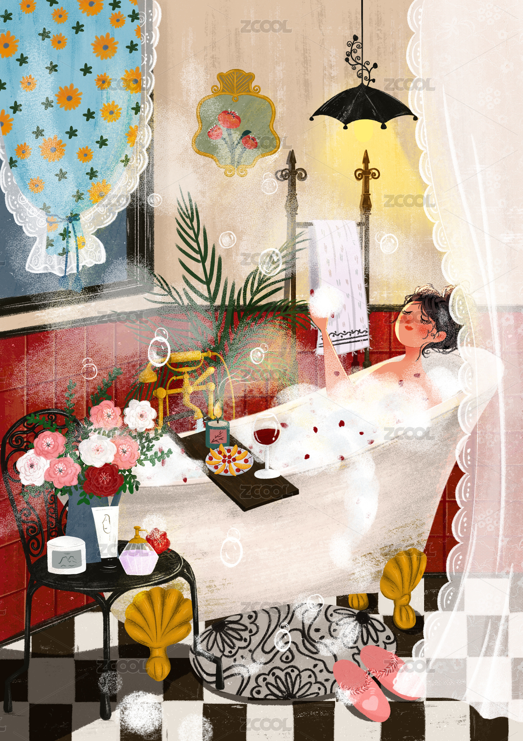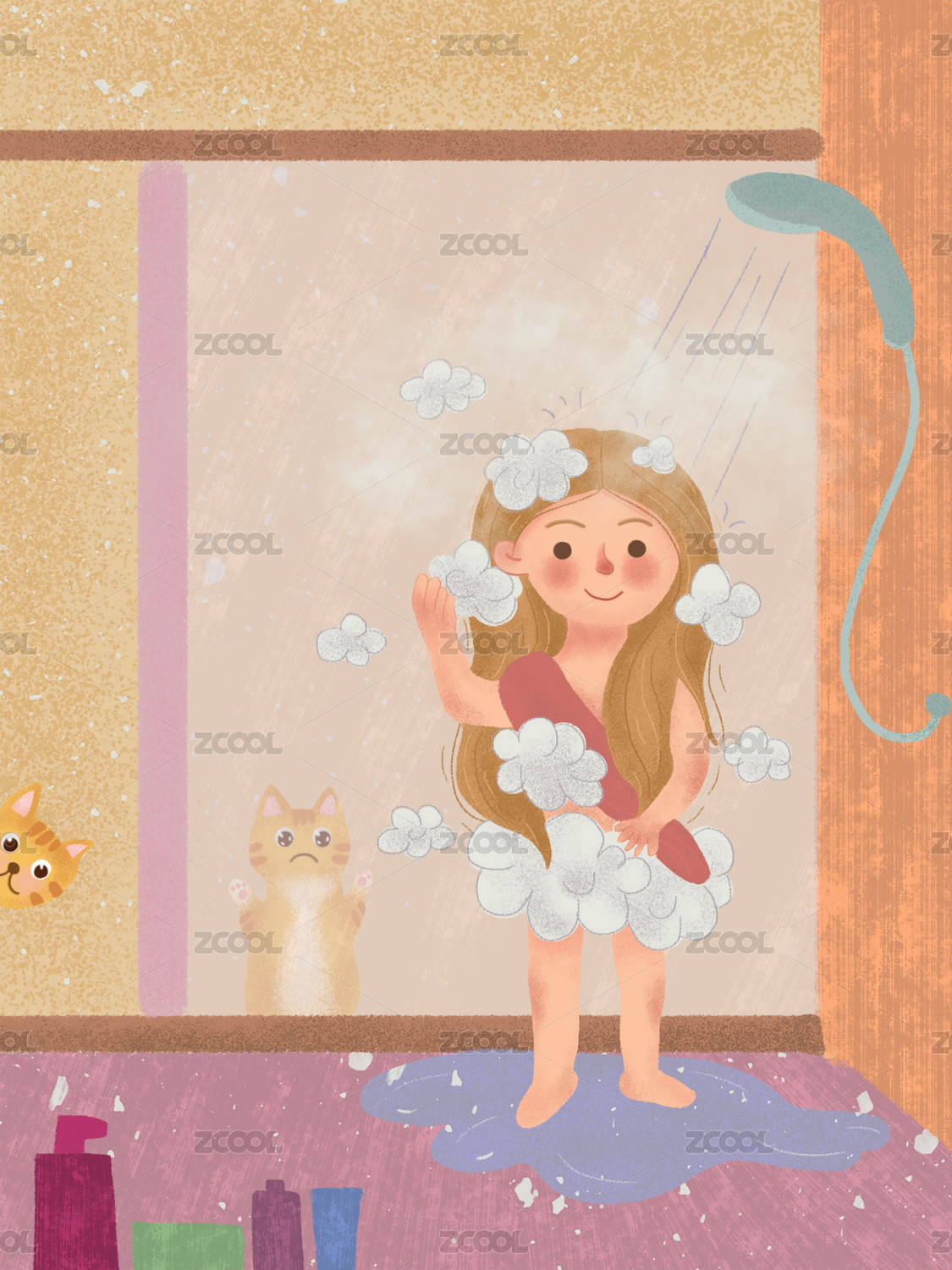 沐浴插畫插圖插畫藝術(shù)設(shè)計(jì)