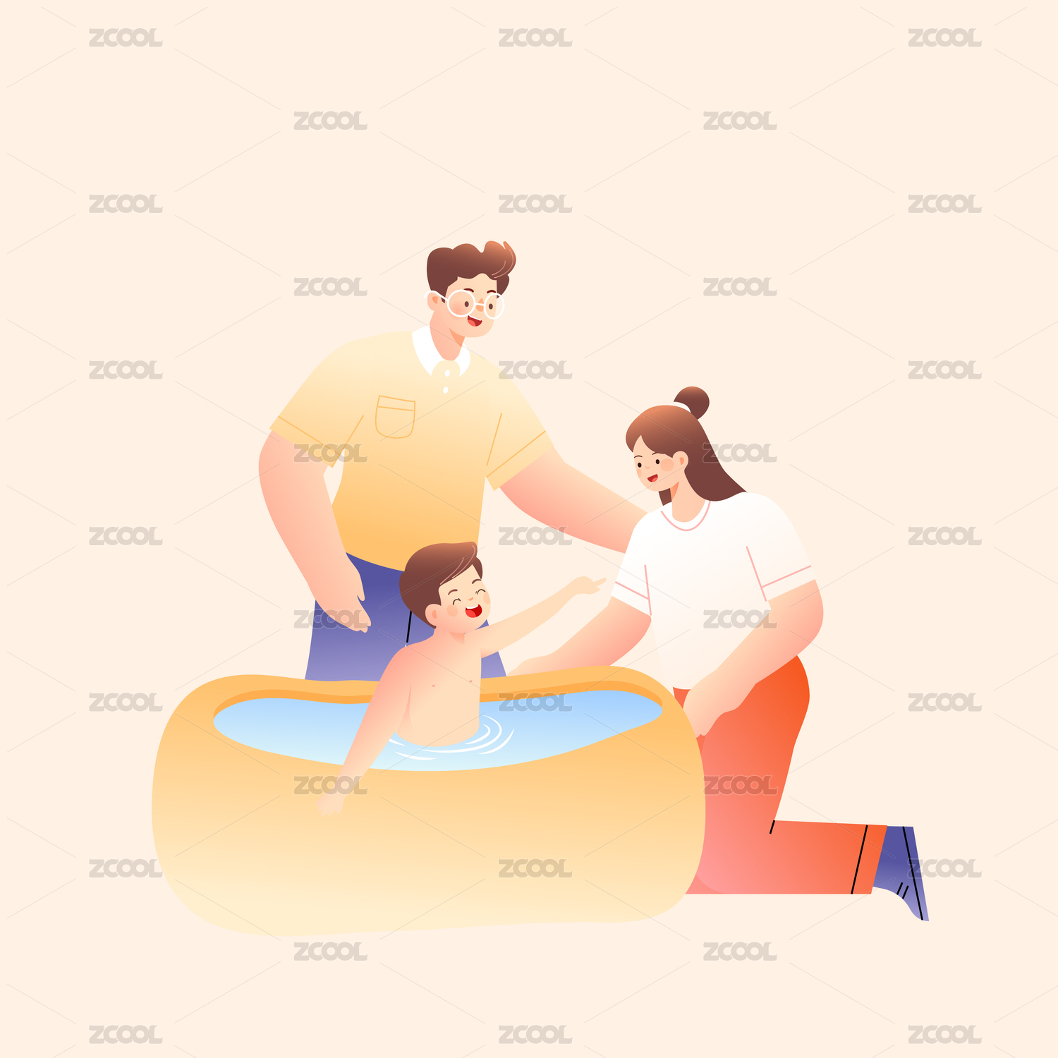 親子洗澡沐浴矢量插畫