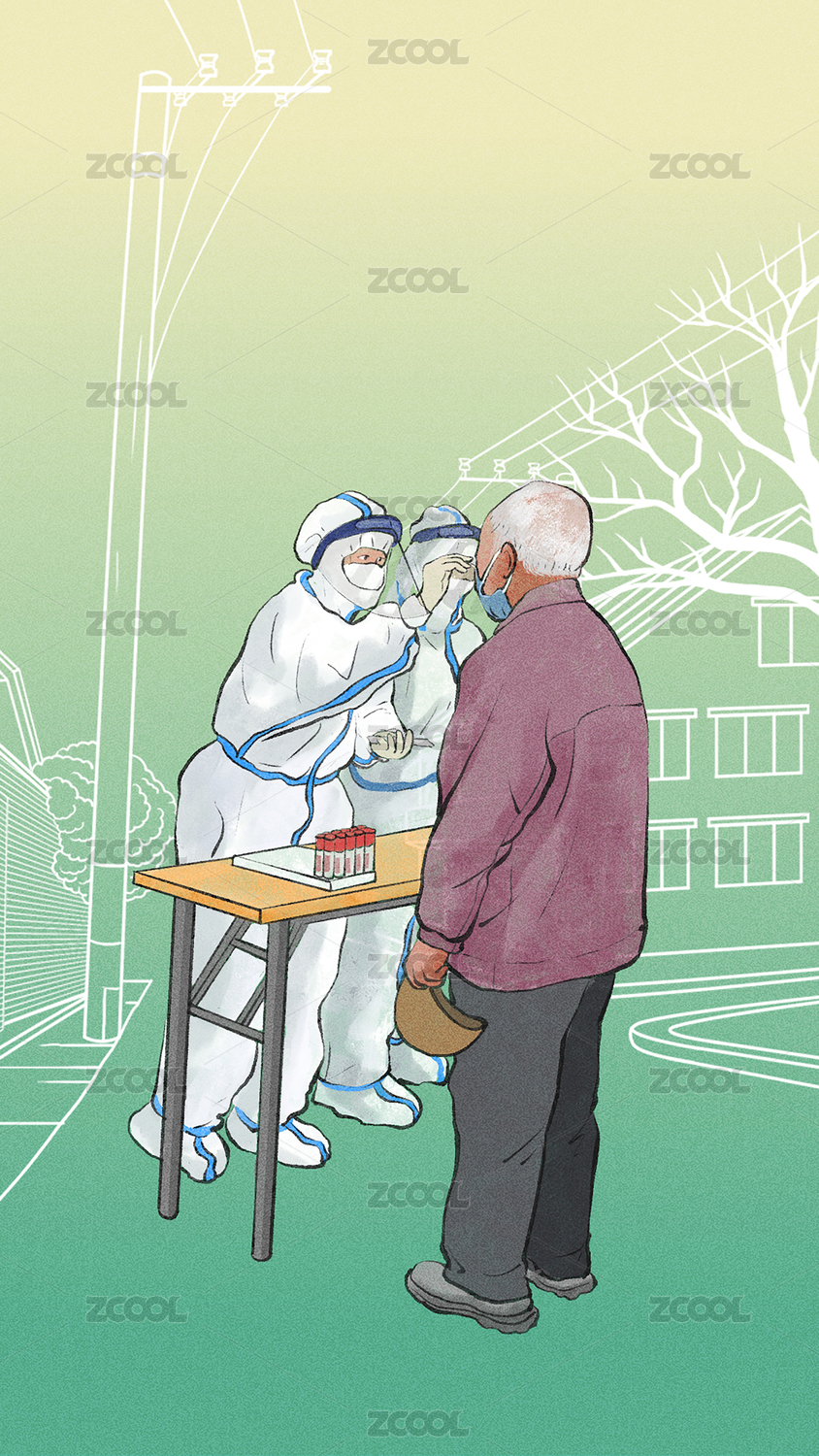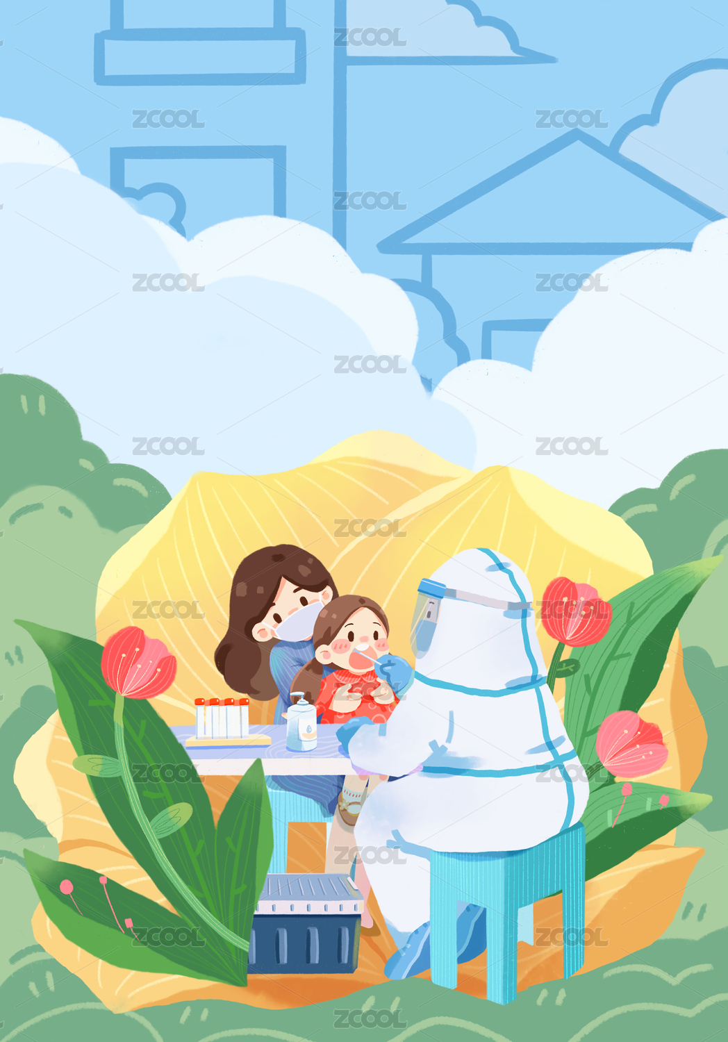 醫(yī)護給群眾核酸采樣檢測防疫抗疫立體海報
