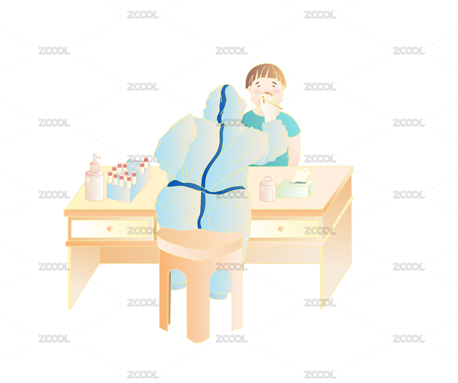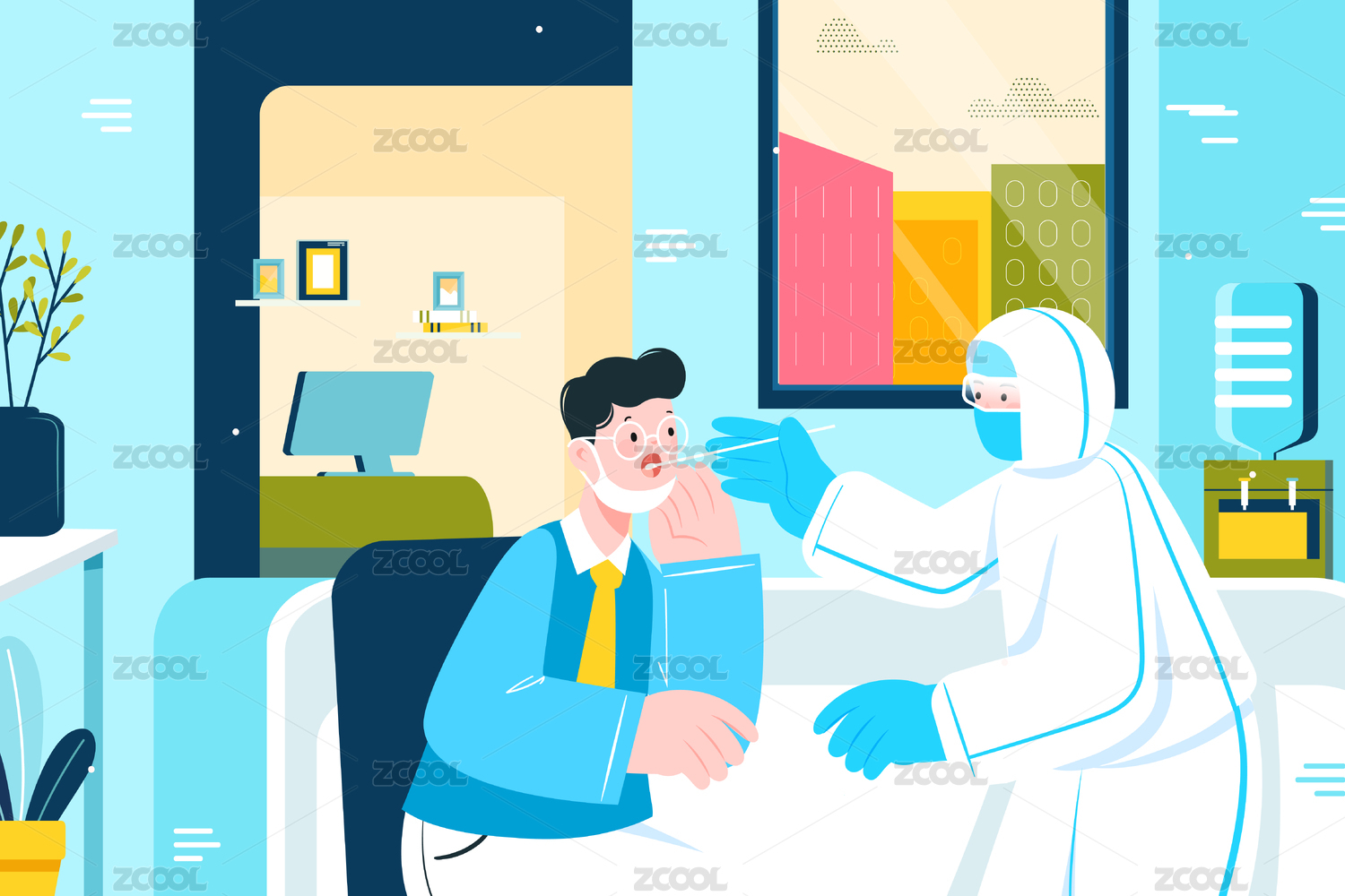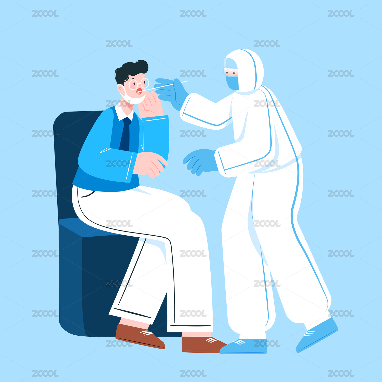 醫(yī)護人員正在對兒童做核酸檢測矢量插畫