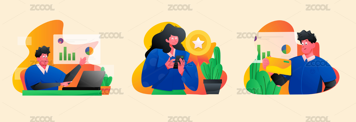 智能Ai機(jī)器人幫助人類工作學(xué)習(xí)場景插畫