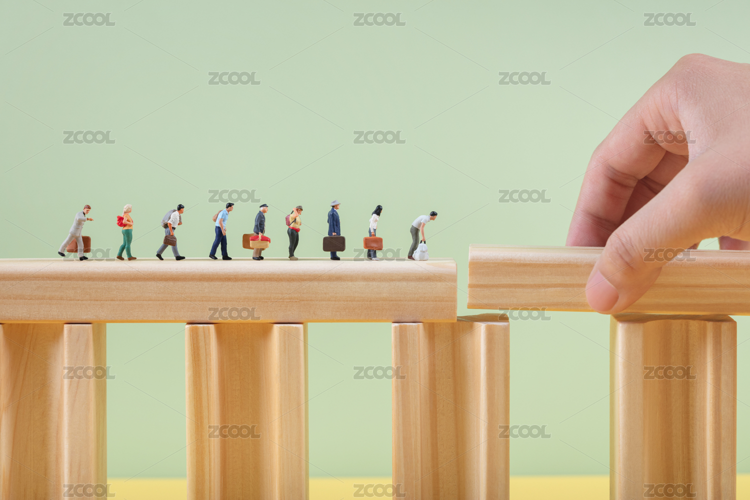 微縮創(chuàng)意搭建幫助人通行橋梁的手