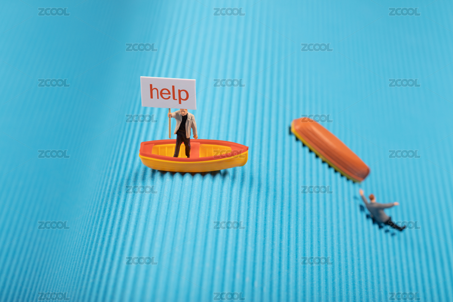 微縮創(chuàng)意在浪尖上小船里尋求幫助的人