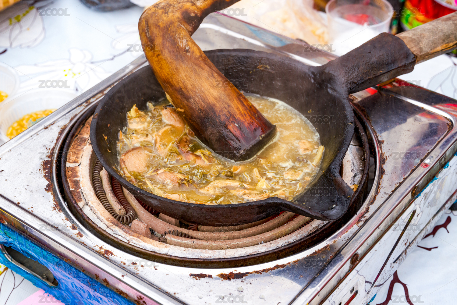 桂林傳統(tǒng)廚師在制作打油茶
