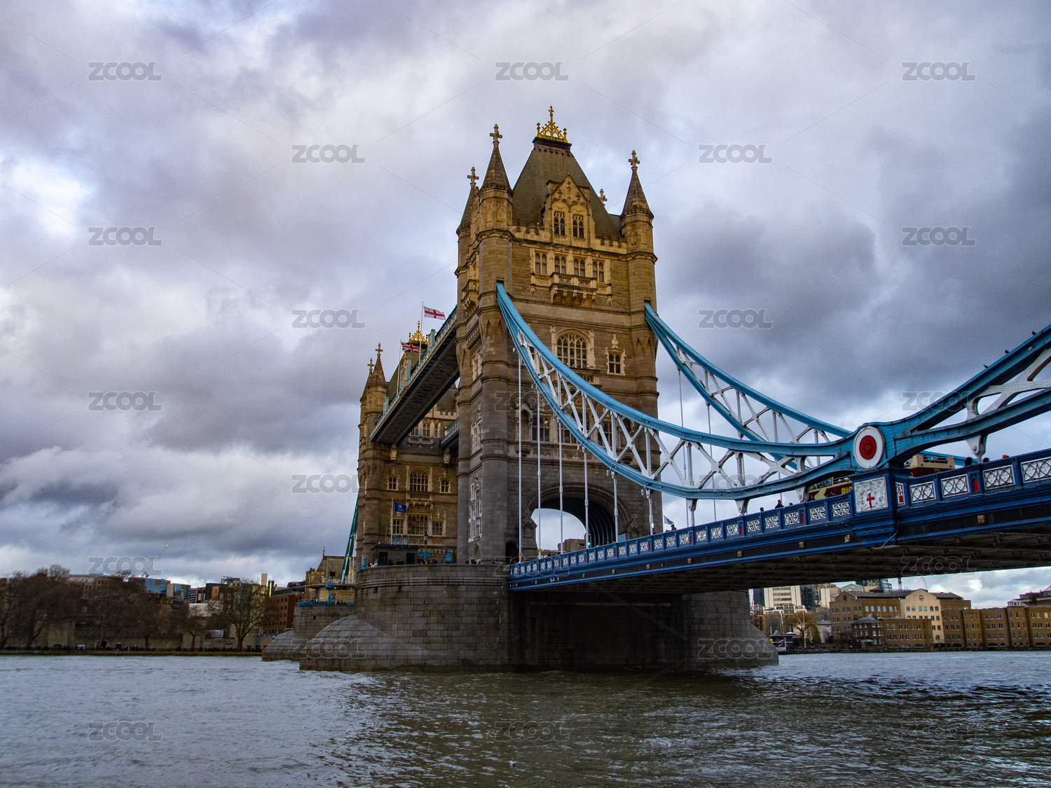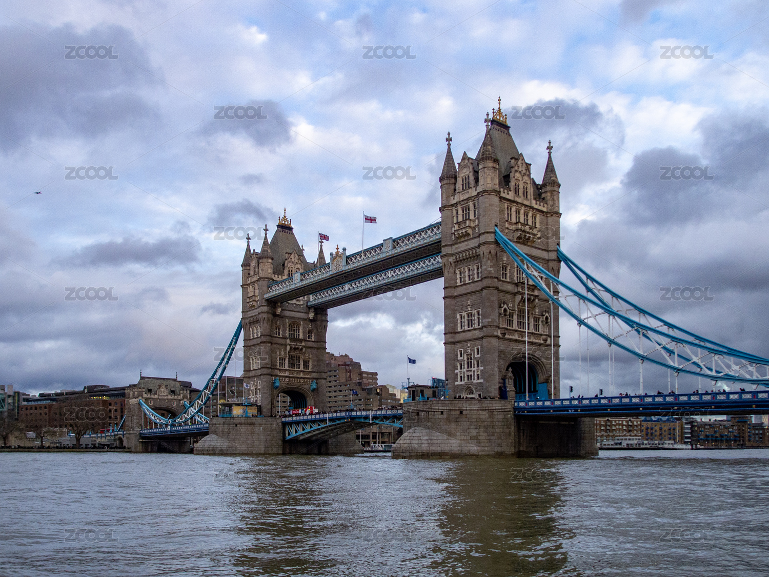 陽光下的倫敦塔橋,陰天背景有飛鳥