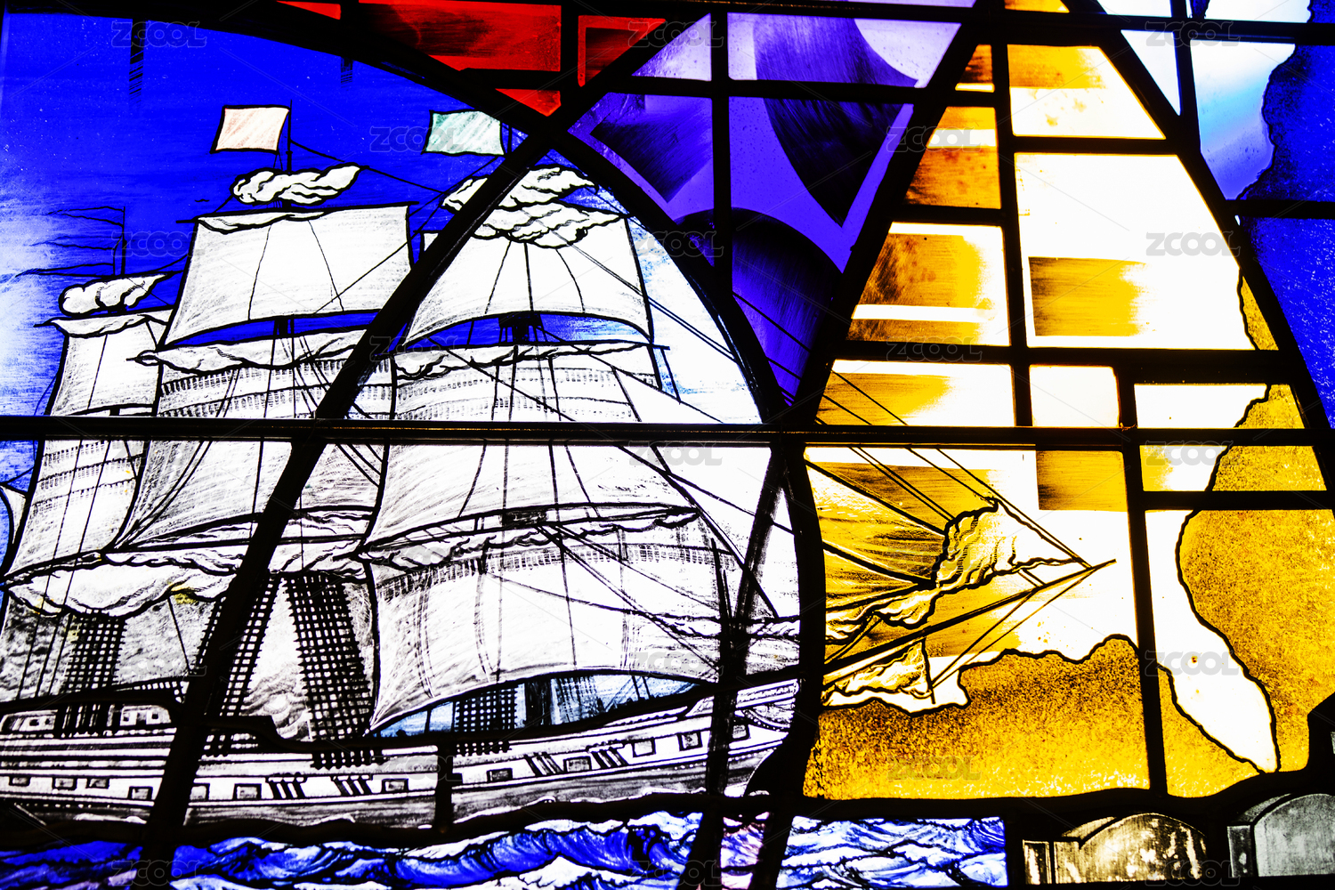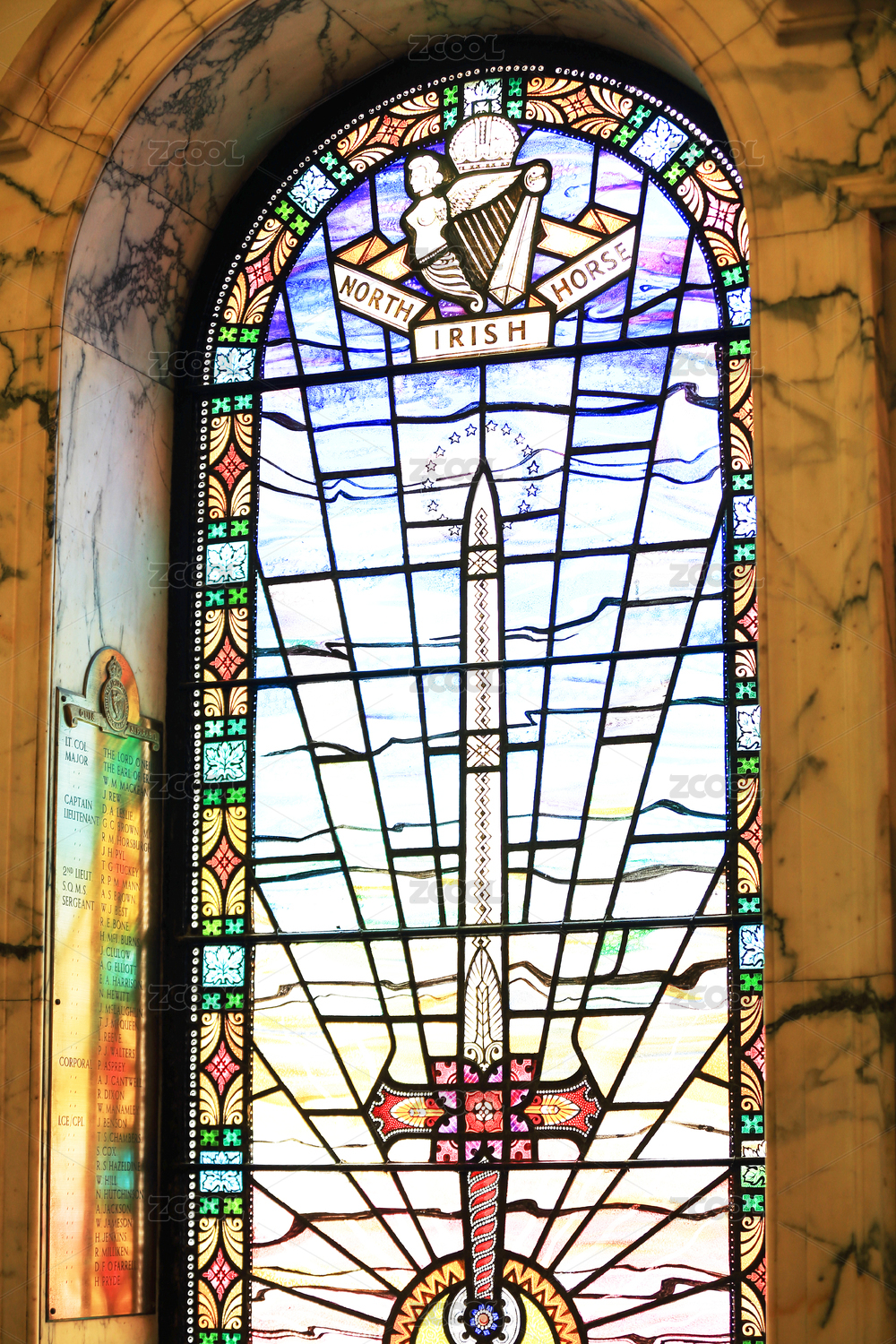 英國北愛爾蘭貝爾法斯特市政廳內部彩色玻璃窗戶