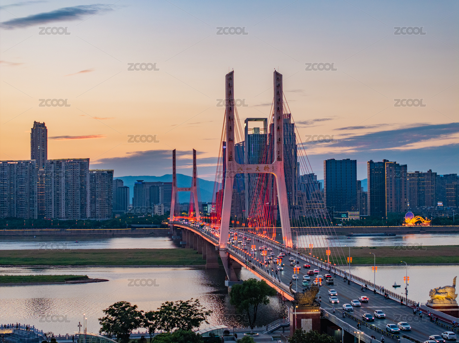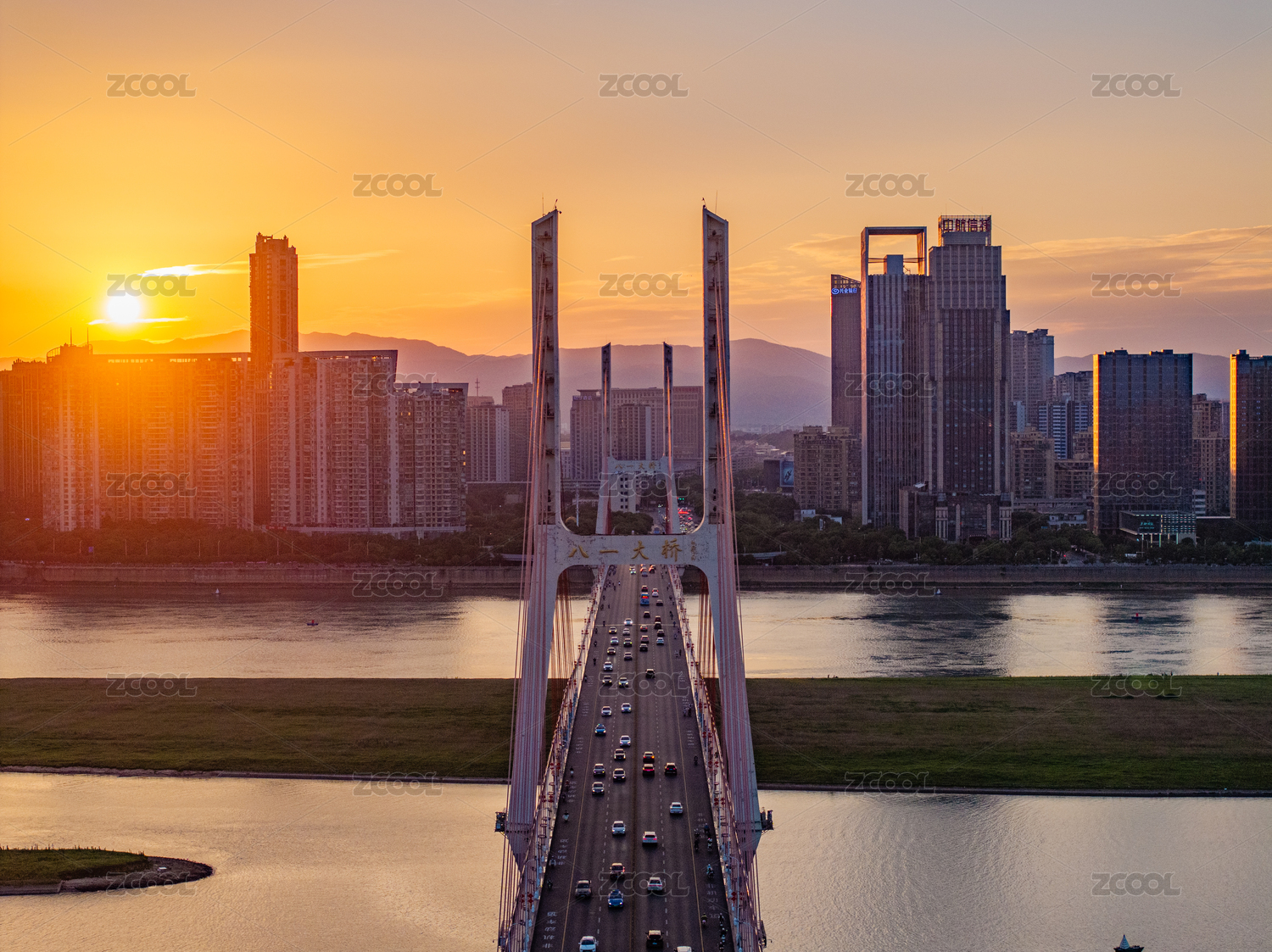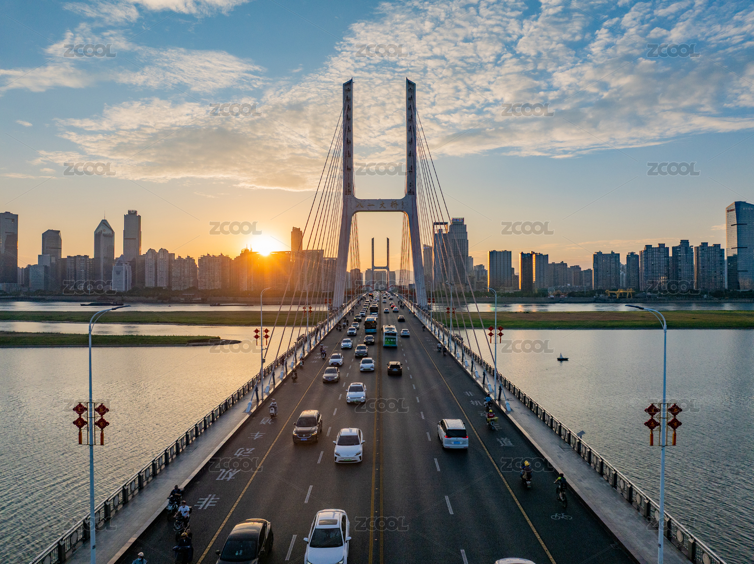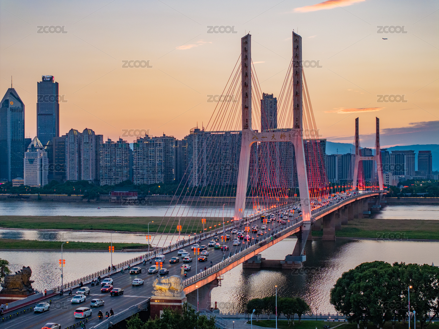 交通繁忙的中國江西南昌八一大橋