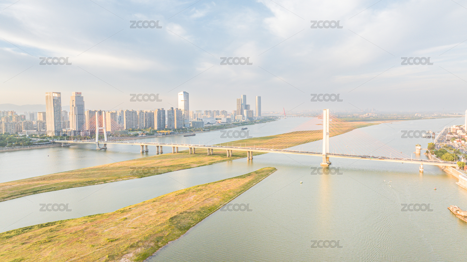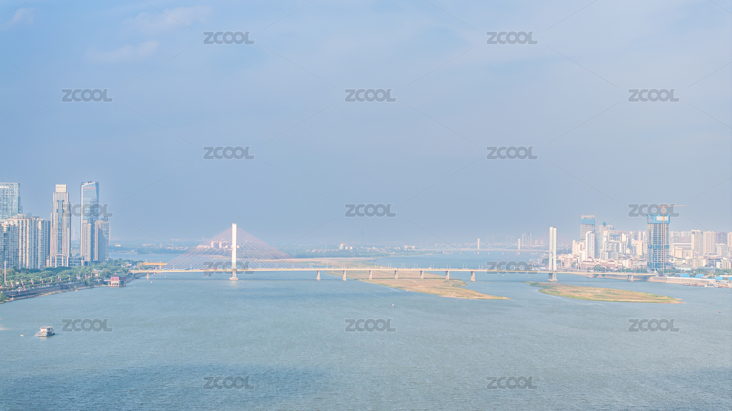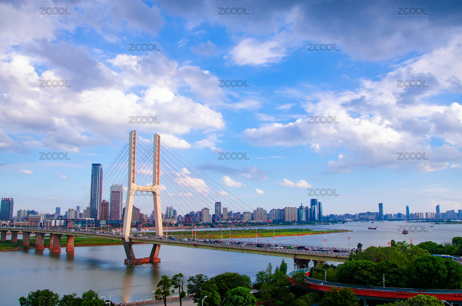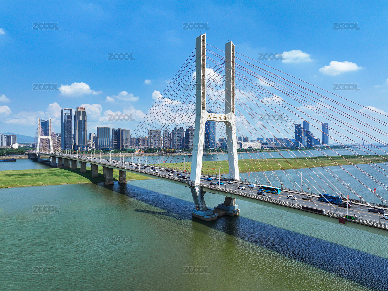 藍(lán)天白云下的南昌八一大橋風(fēng)光