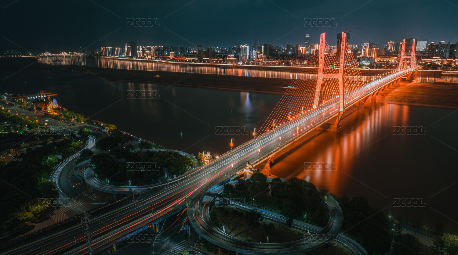俯瞰江西南昌八一大橋引橋部分夜景
