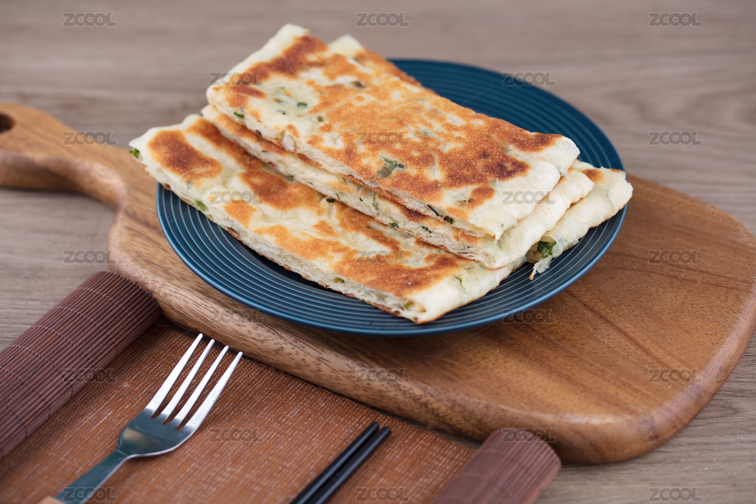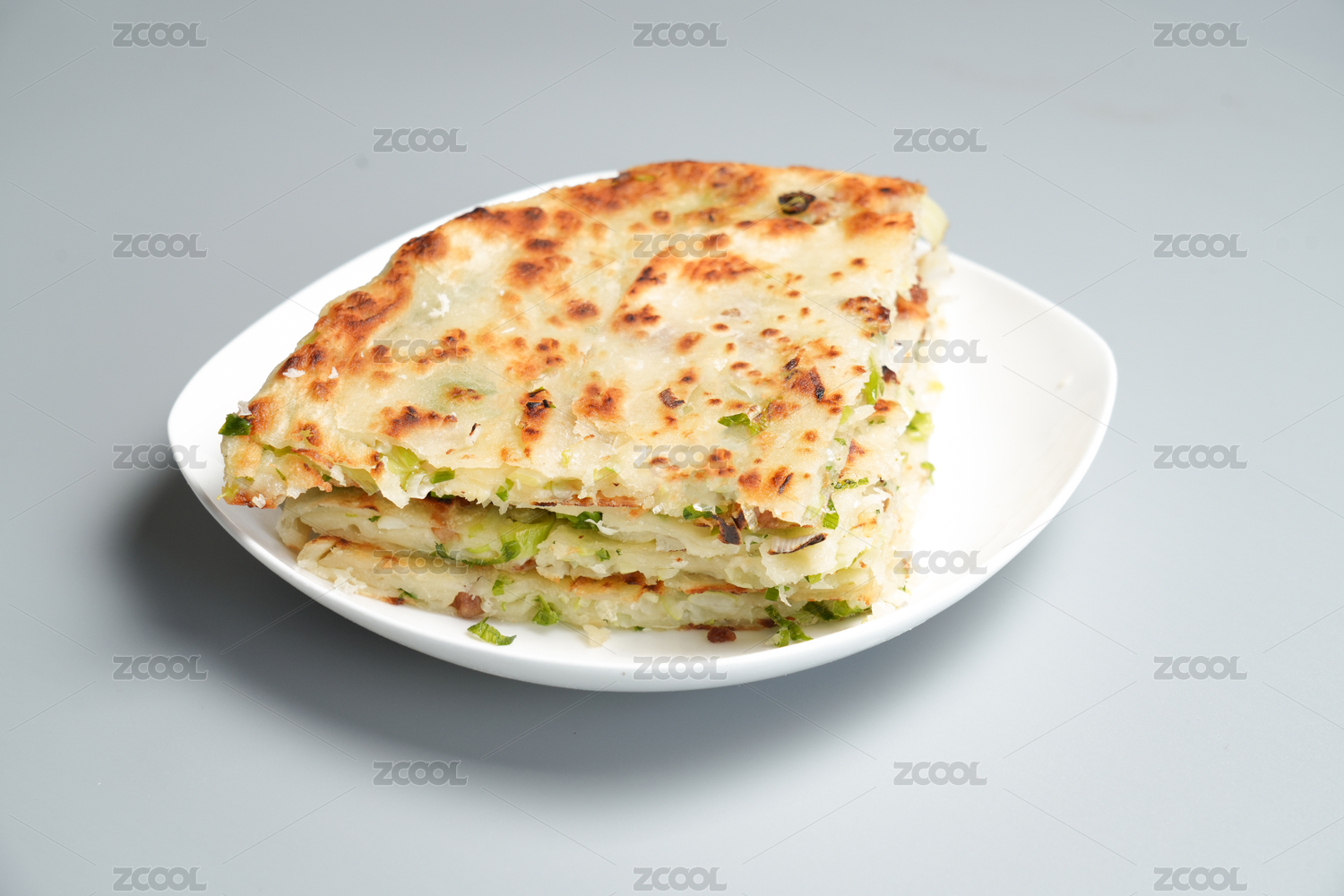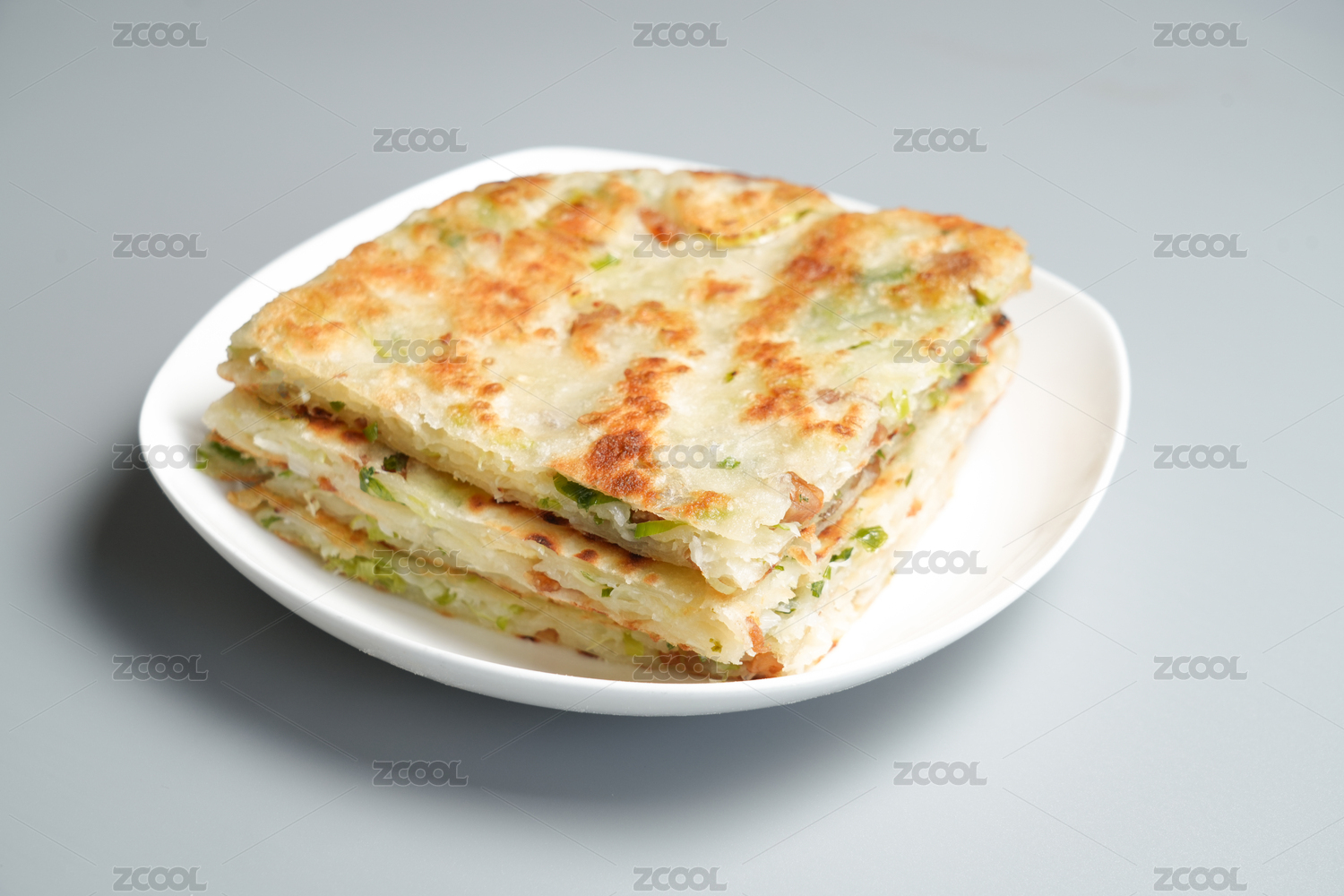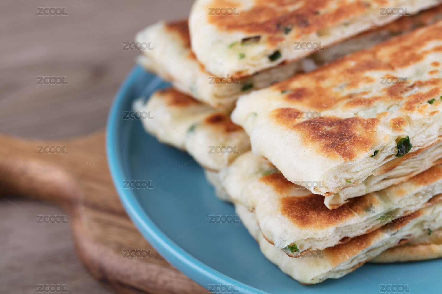 主食面食蔥花餅在盤子里